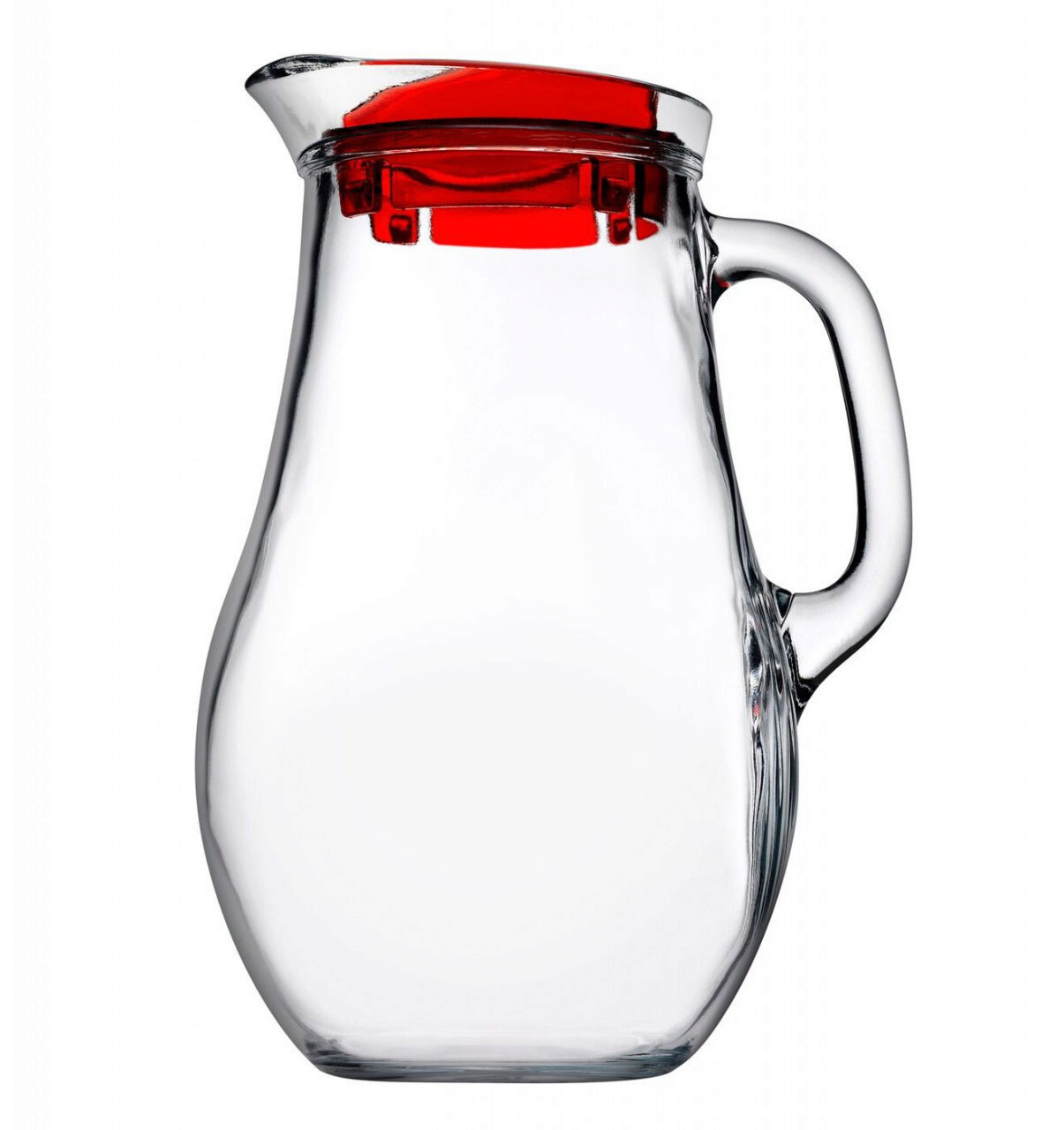Carafa cu capac Bistro, Pasabahce, 1.85 L, plastic/sticla, transparent/rosu