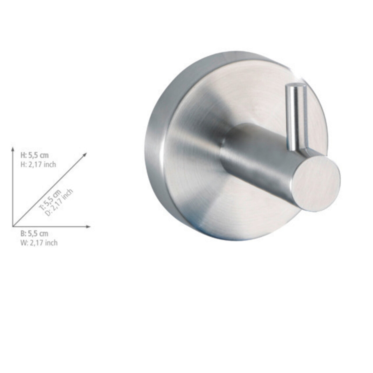 Carlig cu montare pe perete Bosio Matt, Wenko, 5.5x5.5 cm, inox, argintiu mat