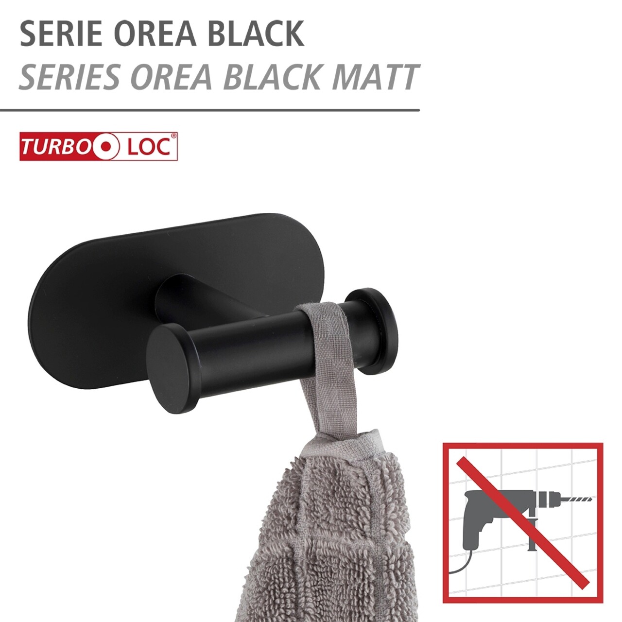 Carlig cu montare pe perete Orea Black, Wenko, 10x6.5x4.5 cm, inox, negru