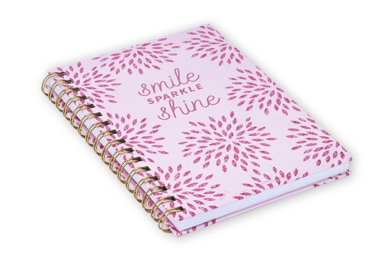 Carnet cu spirala, Smile Sparkle Shine, Tri-Coastal Design, 18 x 21.5 cm, roz/auriu