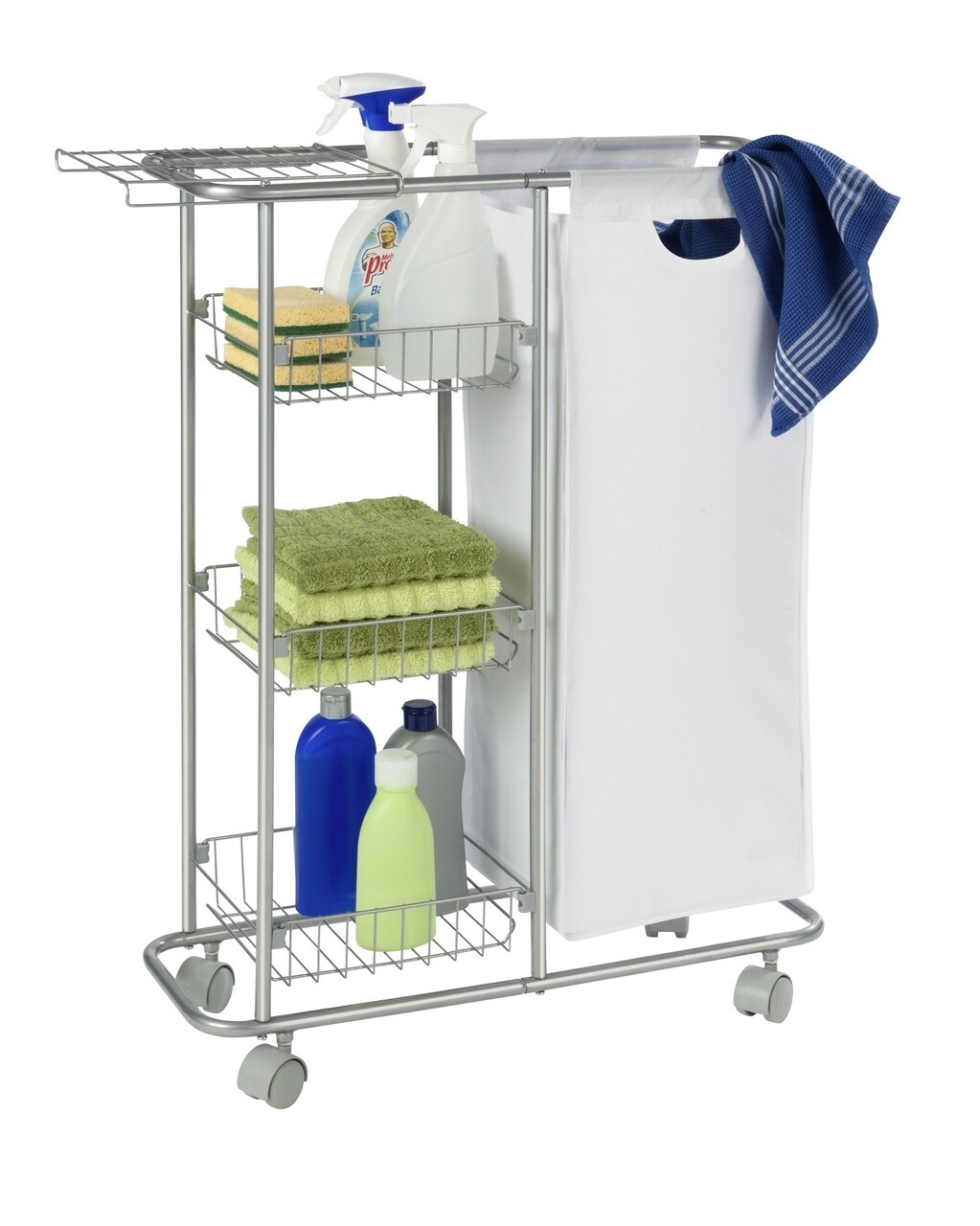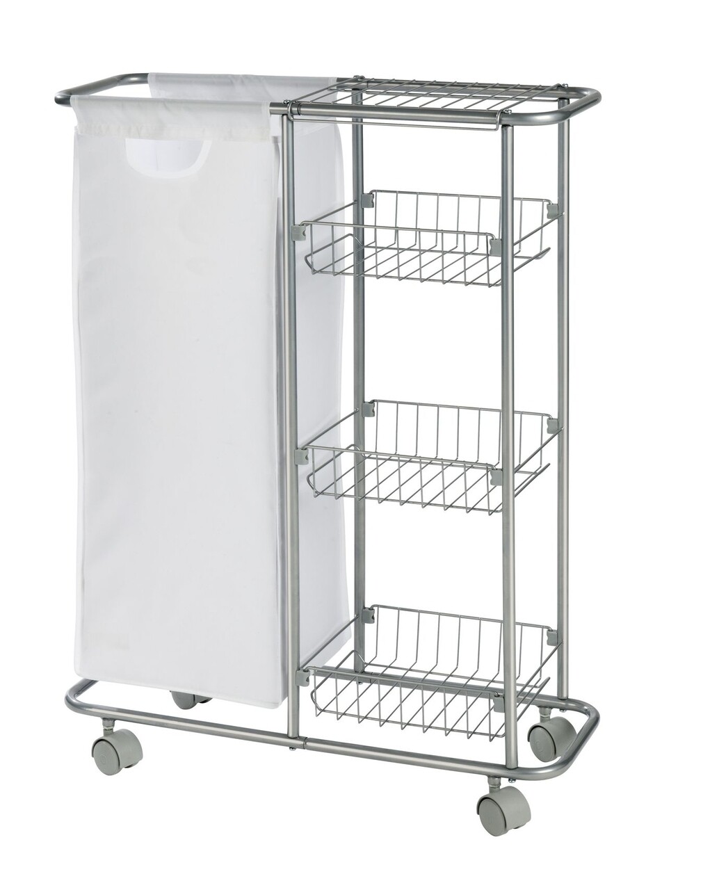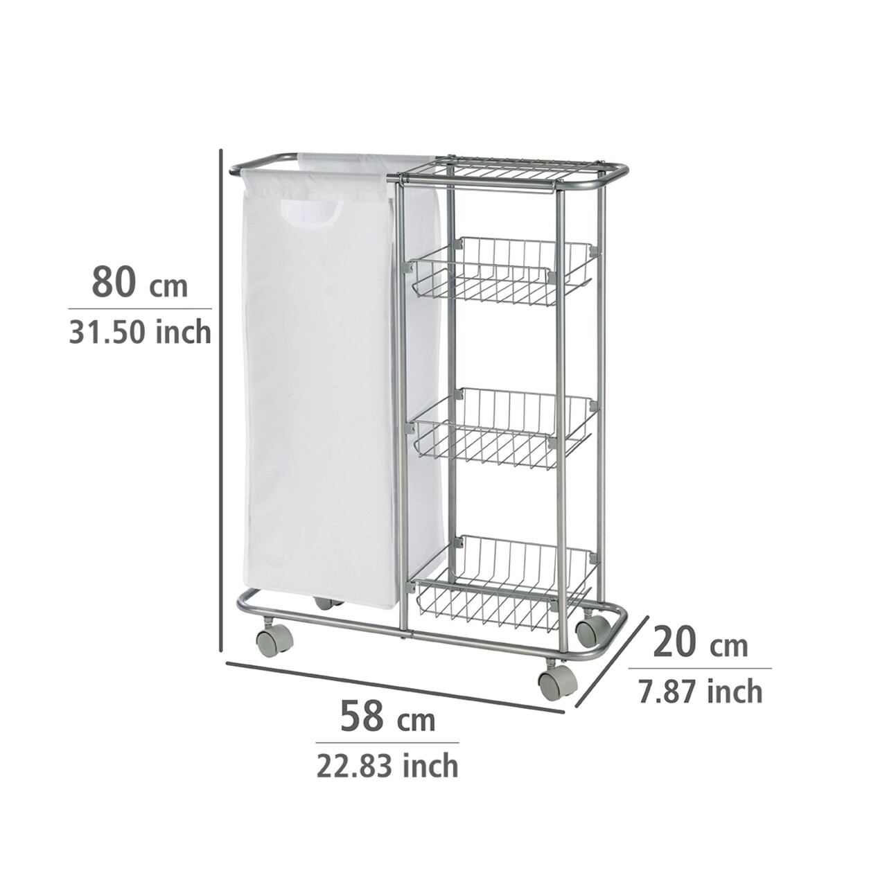 Carucior colector cu 3 rafturi si sac detasabil, Wenko, Slim, 20 x 80 x 58 cm, metal/poliester/polipropilena
