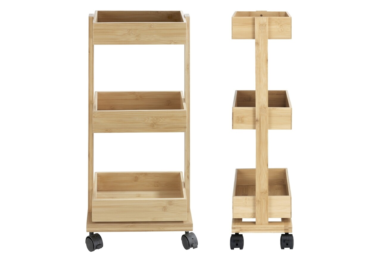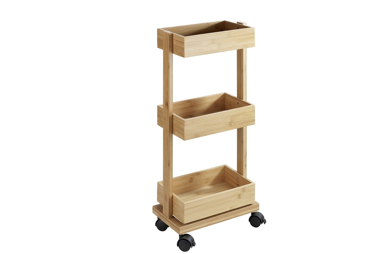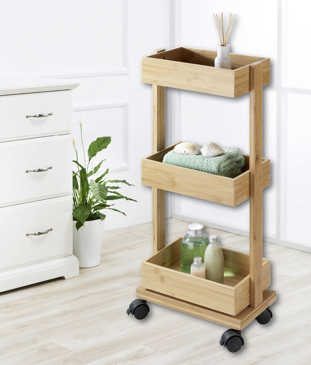 Carucior cu 3 rafturi pentru baie, Wenko, Tortona, 31 x 18 x 71.5 cm, bambus, maro