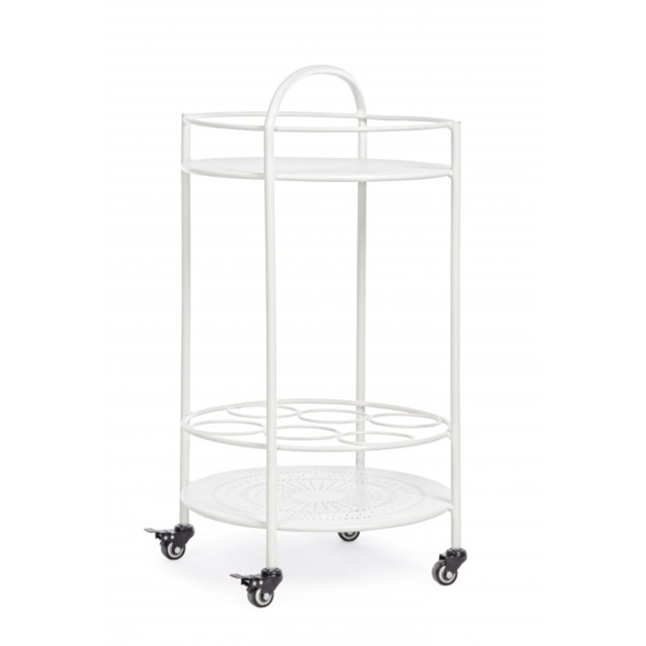 Carucior cu spatiu pentru sticle, Burton, Bizzotto, Ø45x81 cm, otel, alb