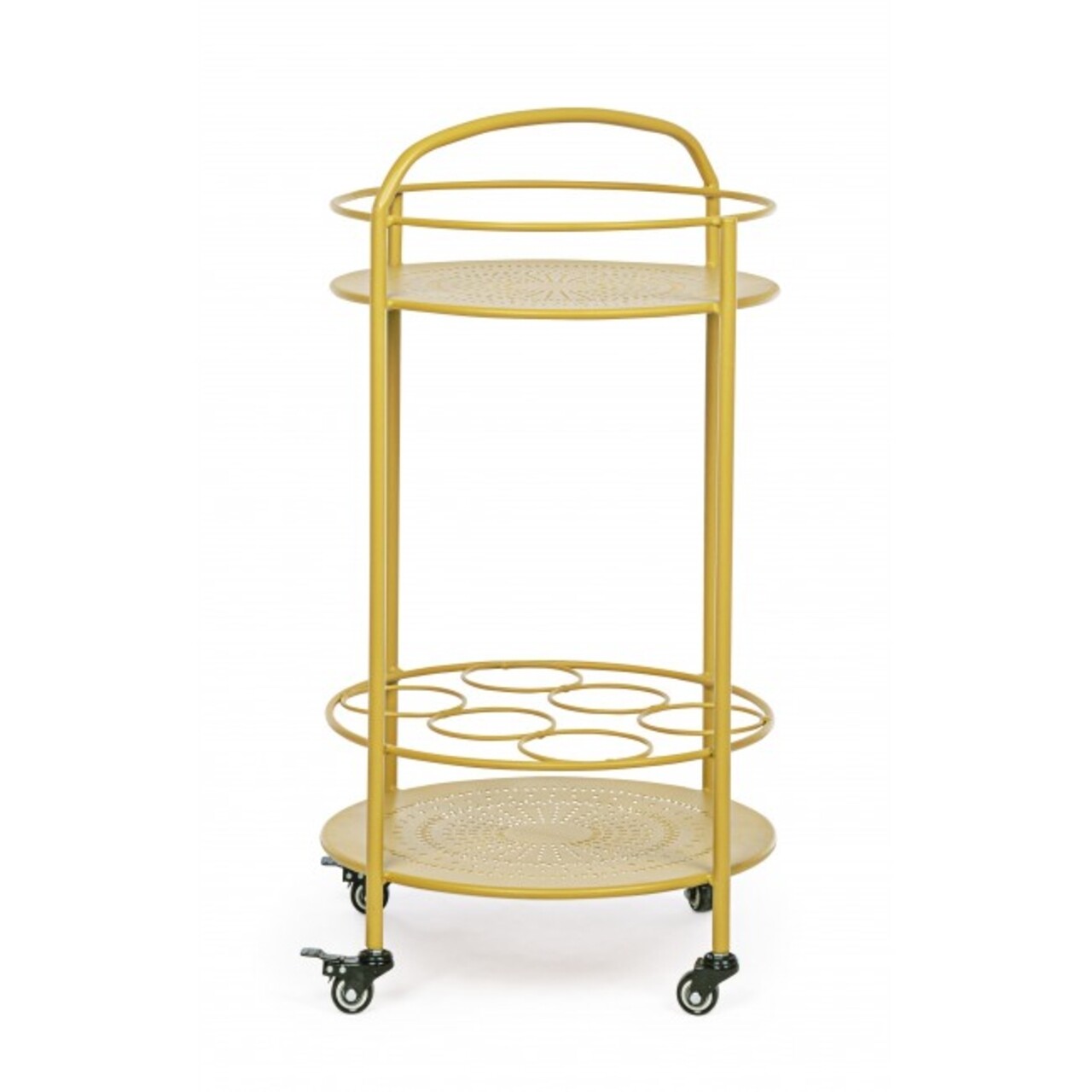 Carucior cu spatiu pentru sticle, Burton, Bizzotto, Ø45x81 cm, otel, ocru