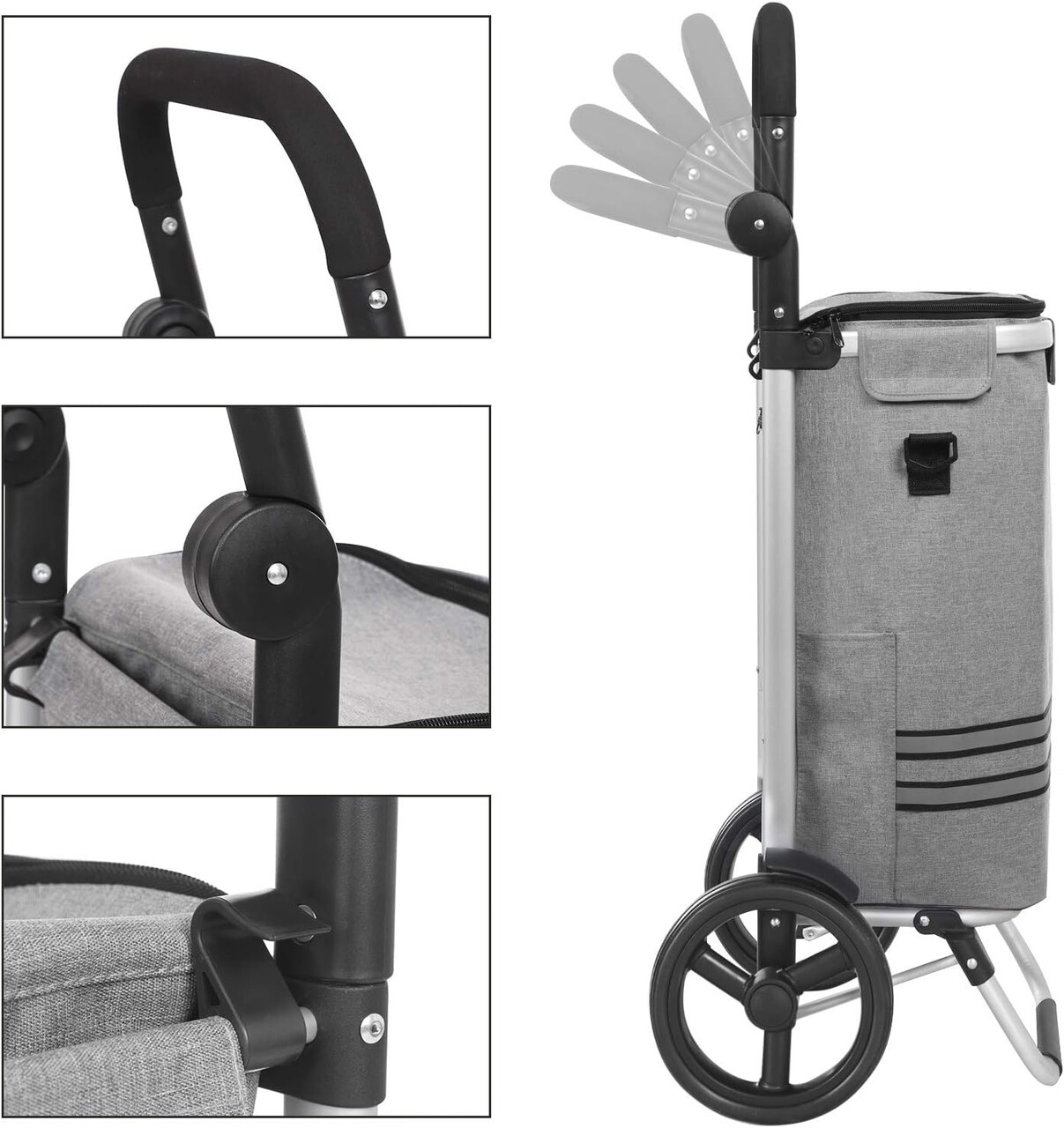 Carucior de cumparaturi 35L, Songmics, compartiment termoizolant, multifunctional, max 25 kg, 44x35x100 cm, poliester 600D/aluminiu, gri