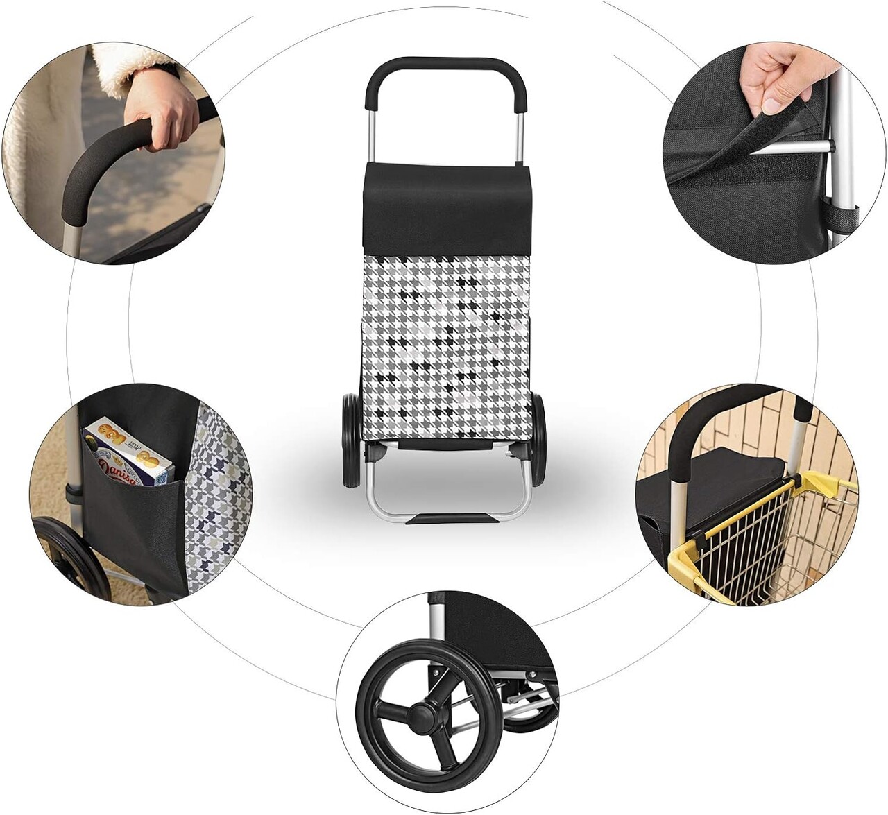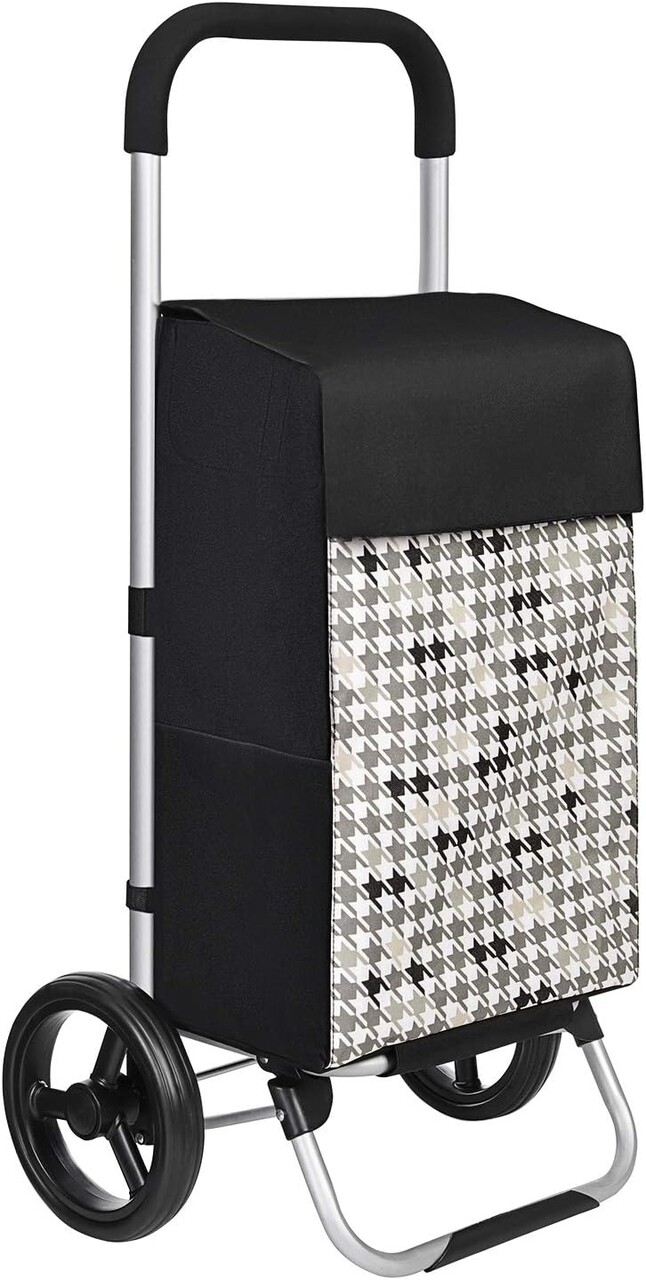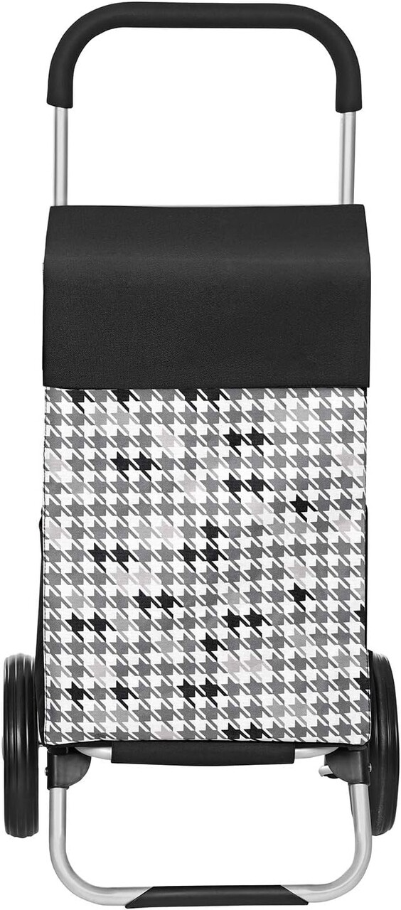 Carucior de cumparaturi 40L Houndstooth Pattern, Songmics, 47x33x97 cm, max 25 kg, tesatura Oxford/aluminiu