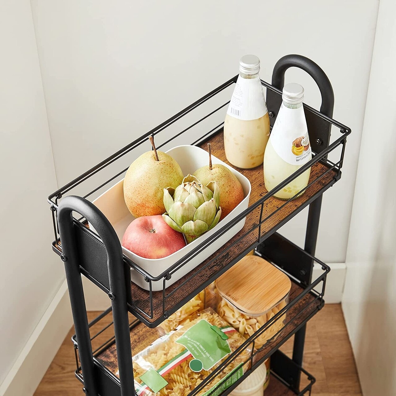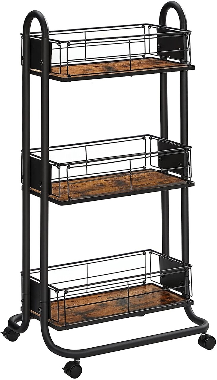 Carucior pentru bucatarie, Vasagle, 42.5 x 35 x 83 cm, otel/MDF, maro