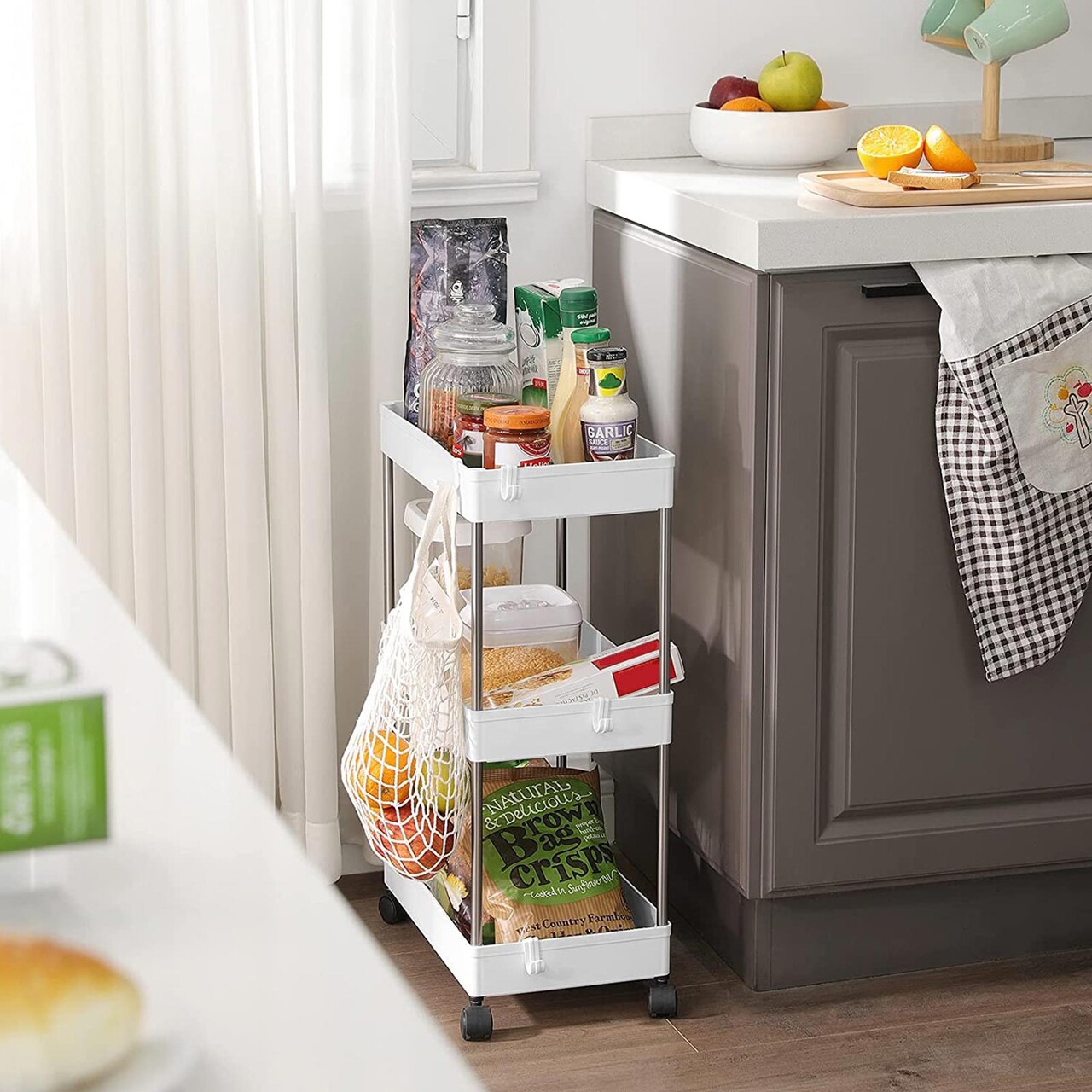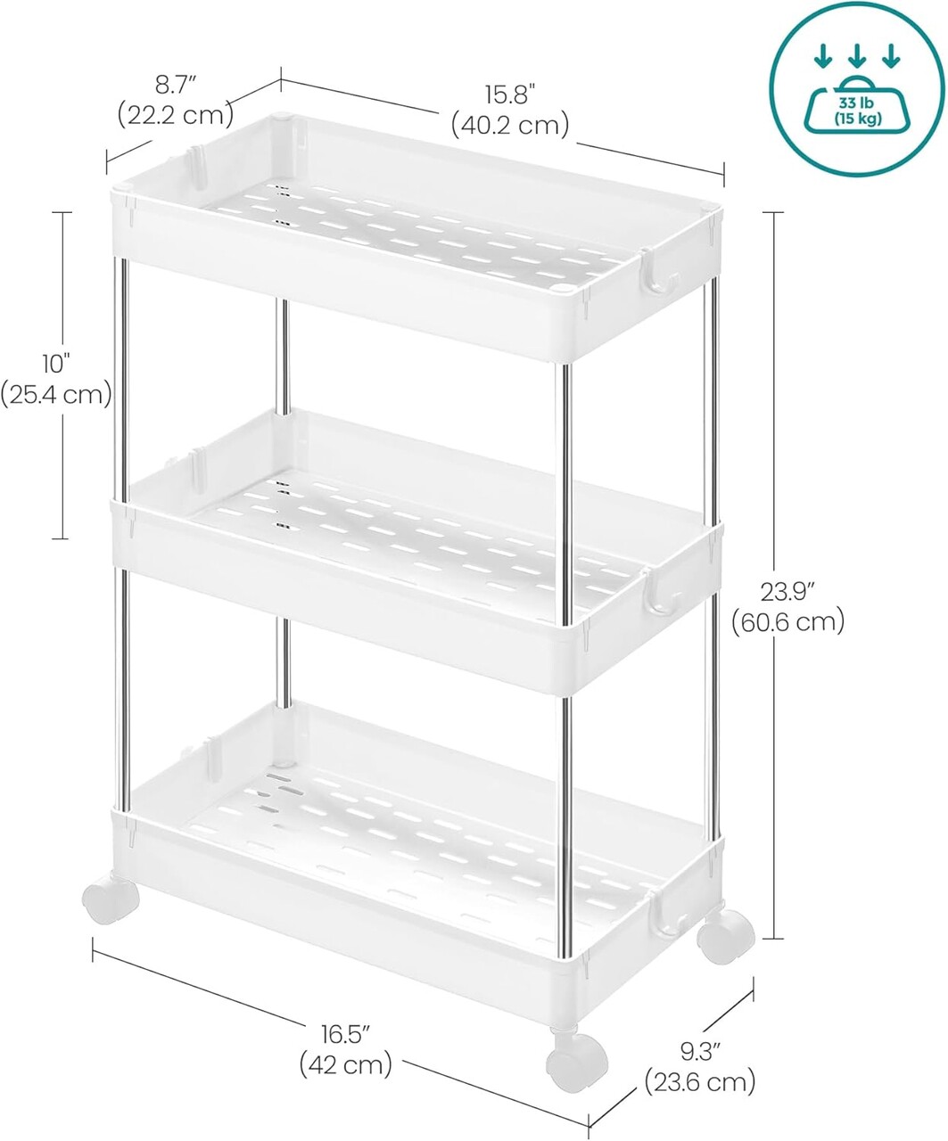 Carucior pentru depozitare, Songmics, 40x22x60 cm, otel/polipropilena, alb