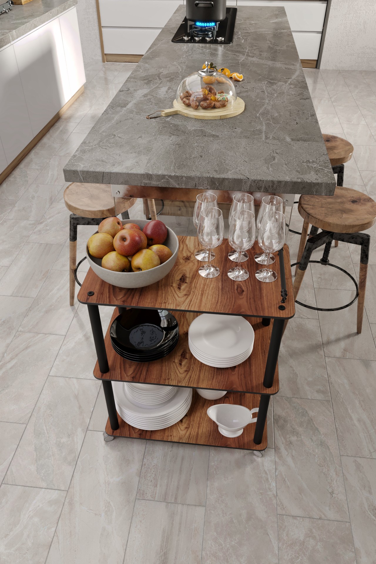 Carucior pentru servire, Hanah Home, Dinner Trolley, 60x74x35 cm, MDF , Maro