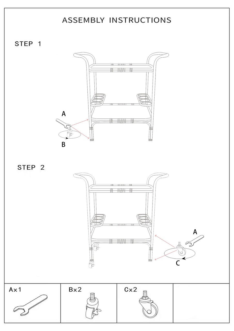 Carucior dreptunghiular din metal si ratan, prevazut cu 2 rafturi, suport pentru sticle cu 8 compartimente si roti practice cu sistem de franare.