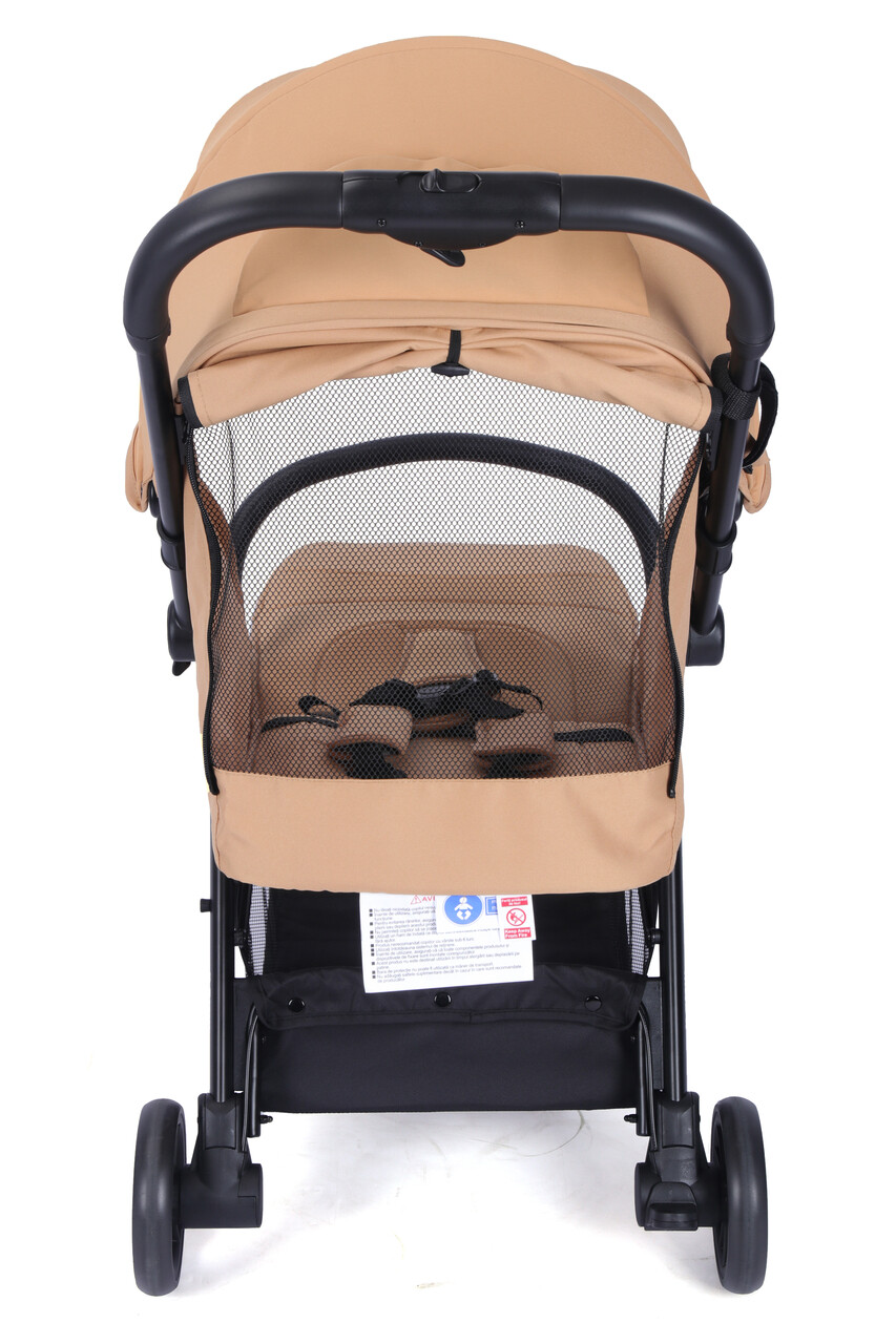 - copertina este prevazuta cu viziera transparenta (de tip plasa) ce permite supravegherea copilului