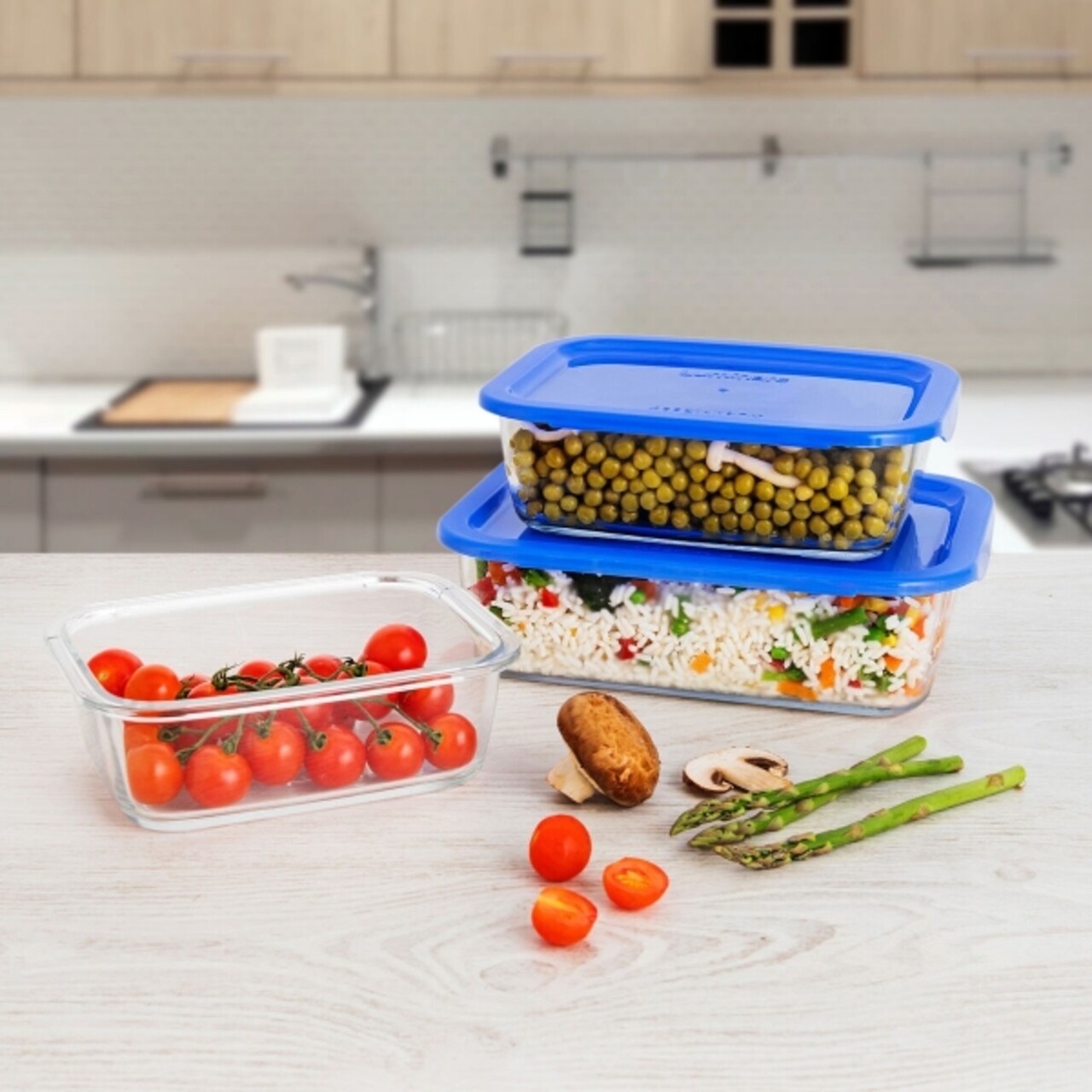 Caserola cu capac, Luminarc, Keep'n blue ice, 0.82 L, sticla, albastru/transparent