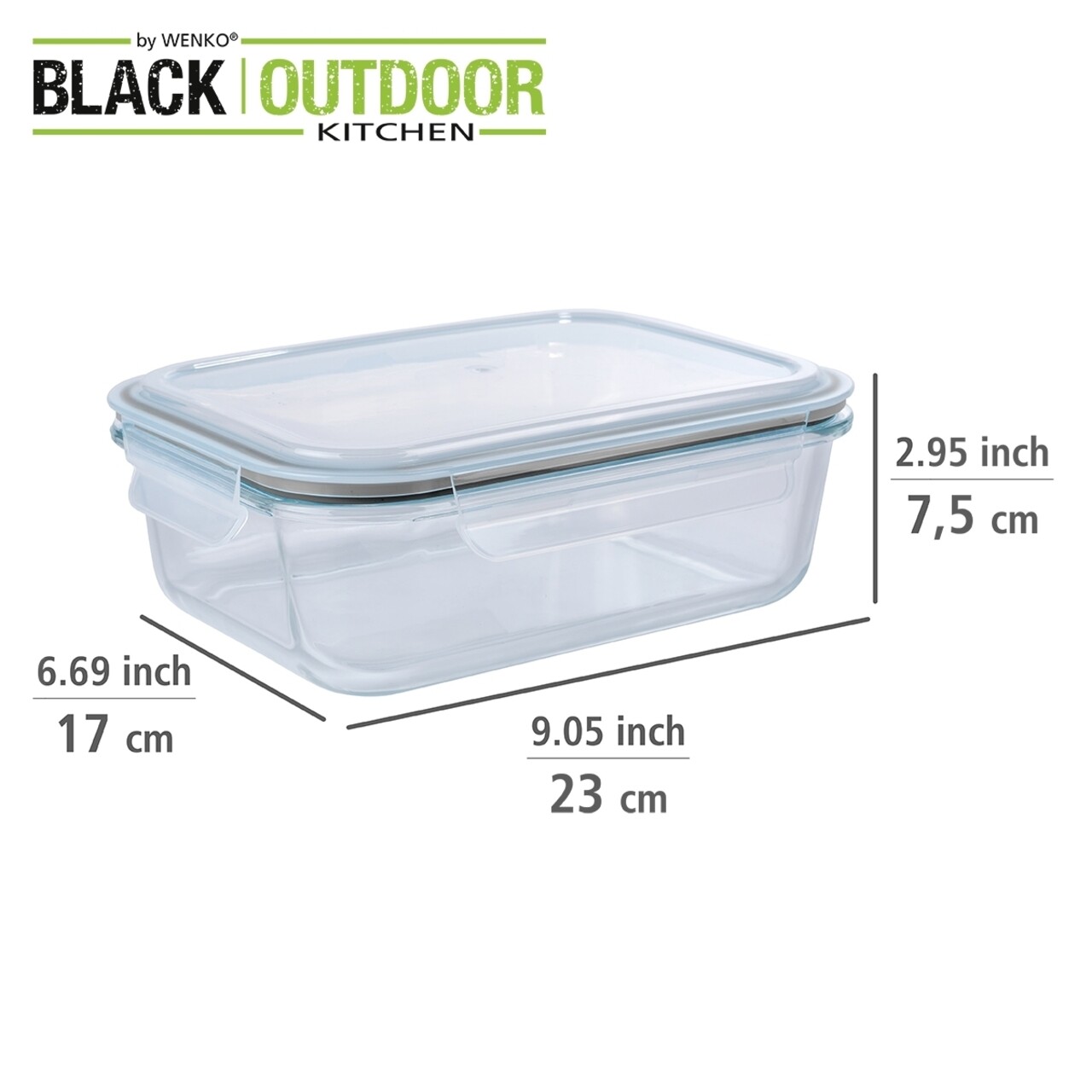 Caserola cu capac, Wenko, Pacu, 1.5 L, 23 x 17 x 7.5 cm, sticla/polipropilena/silicon, transparent