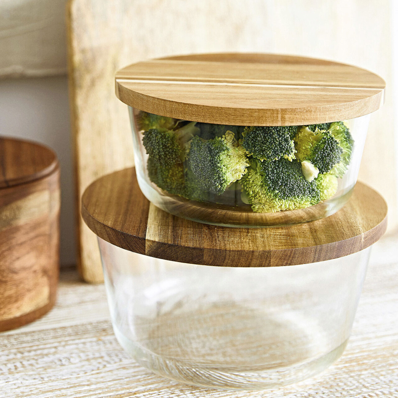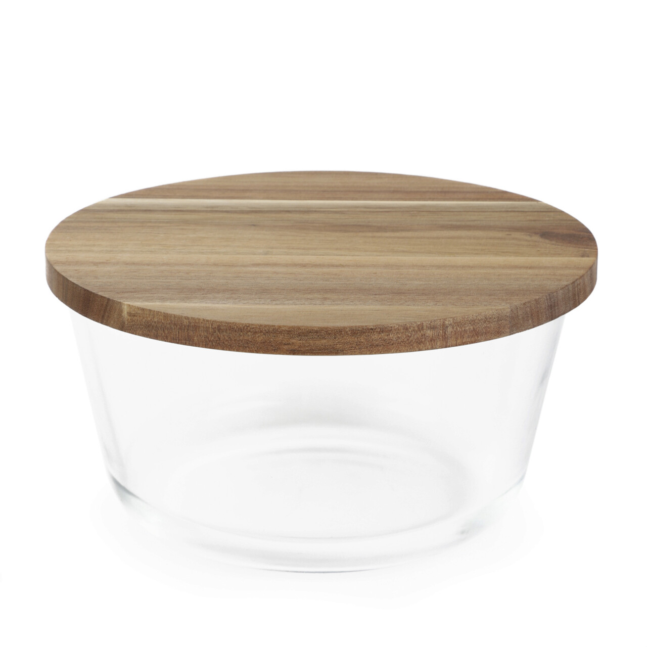 Caserola Maira, Homla, 23x12 cm, sticla/lemn, transparent/maro