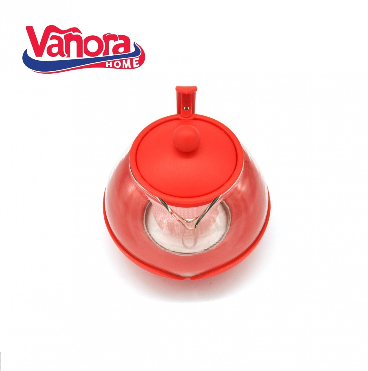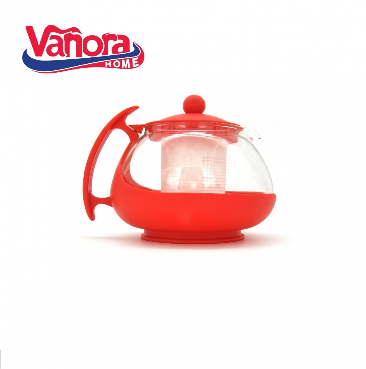 Ceainic cu infuzor, Vanora, 750 ml, sticla/plastic, rosu