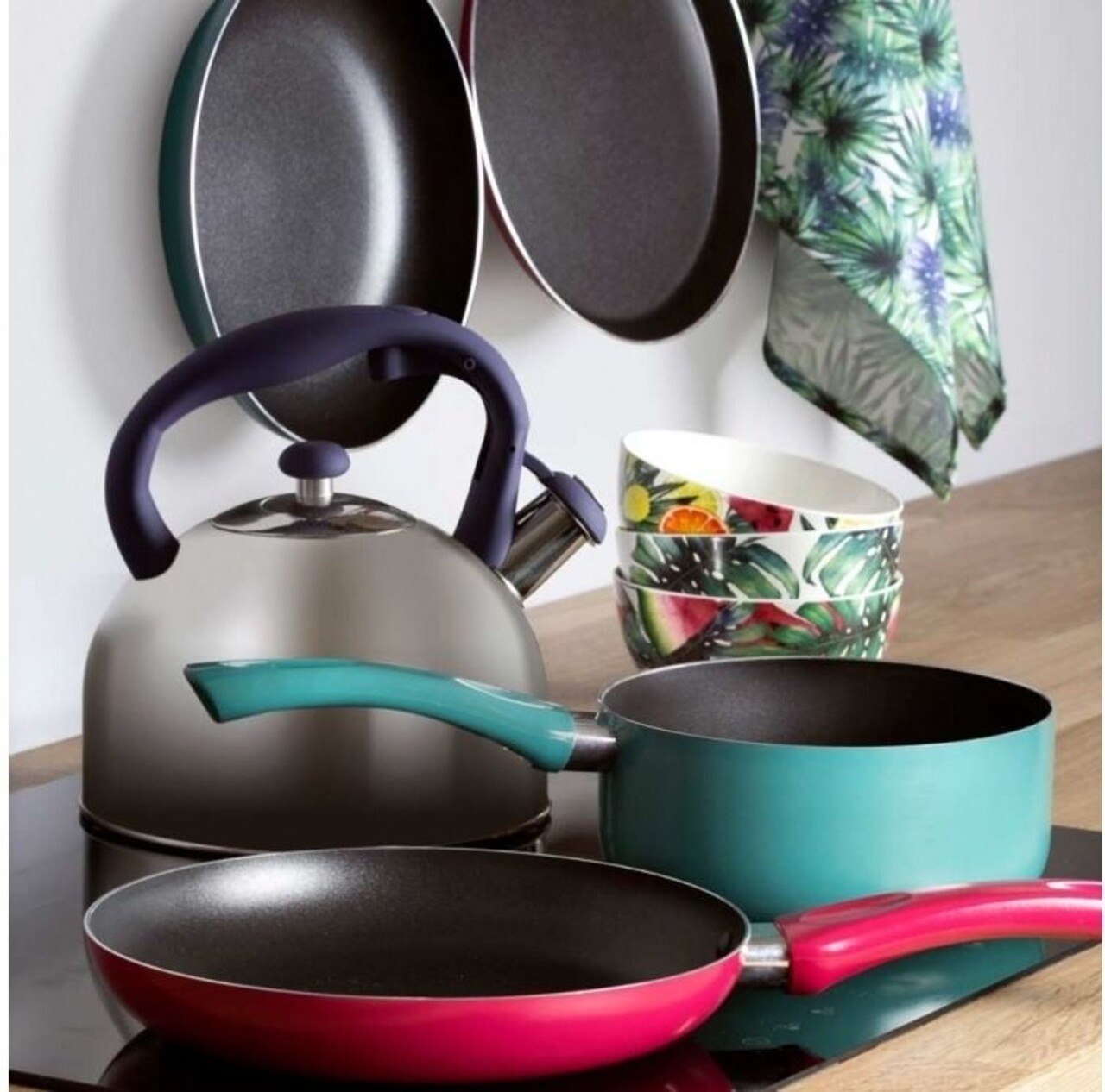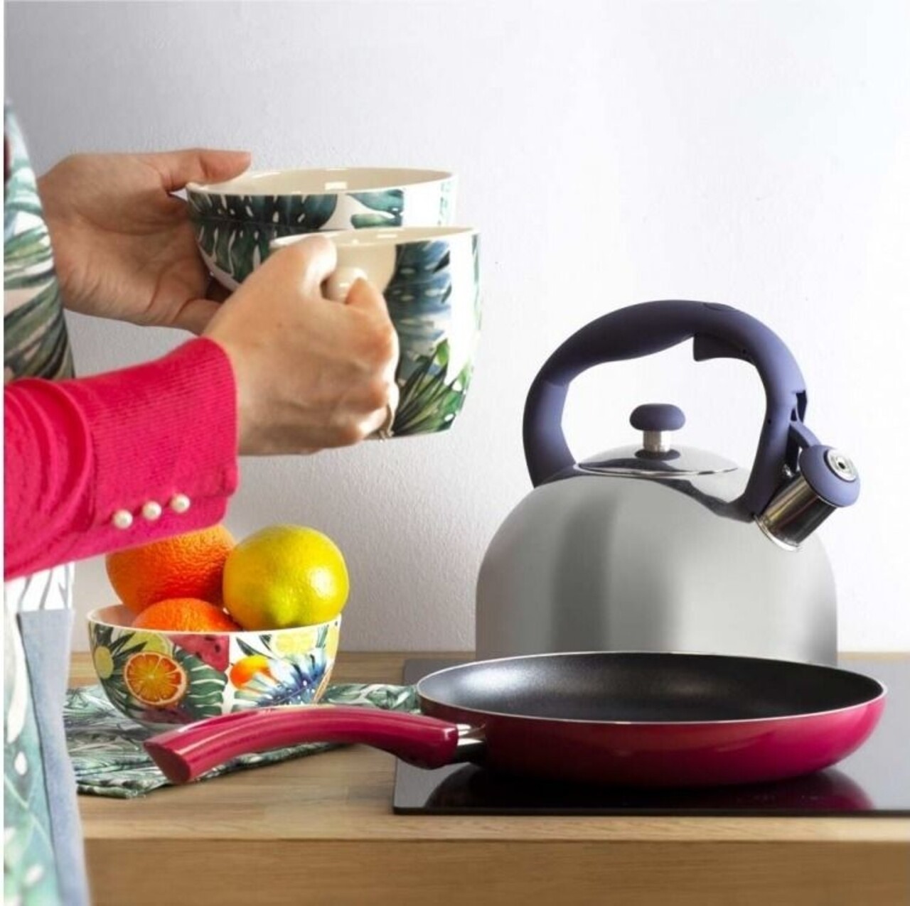 Ceainic cu o capacitate de 2.3l (capacitate totala 2.8l) fabricat din otel inoxidabil cu finisaje lucioase, maner Soft Touch colorat, fluier de atentionare. Ceainicele din colectia Tropical sunt potrivite pentru toate tipurile de aragaze sau plite, inclusiv plita cu inductie.