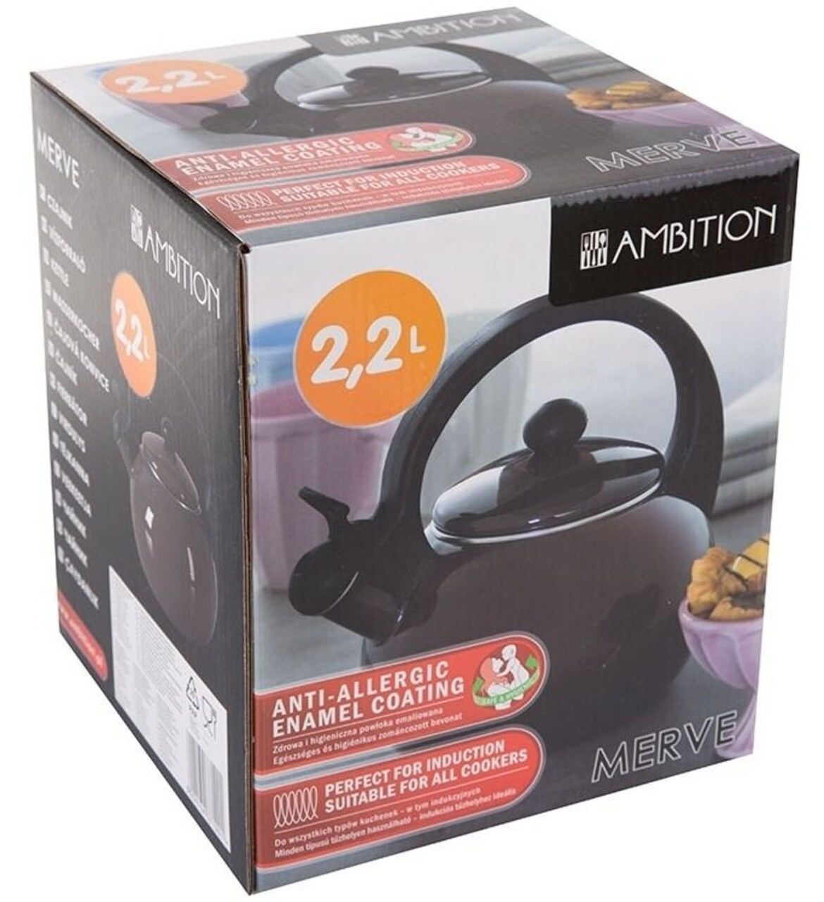 Ceainic emailat Merve, Ambition, 2.2 L, otel carbon, maro