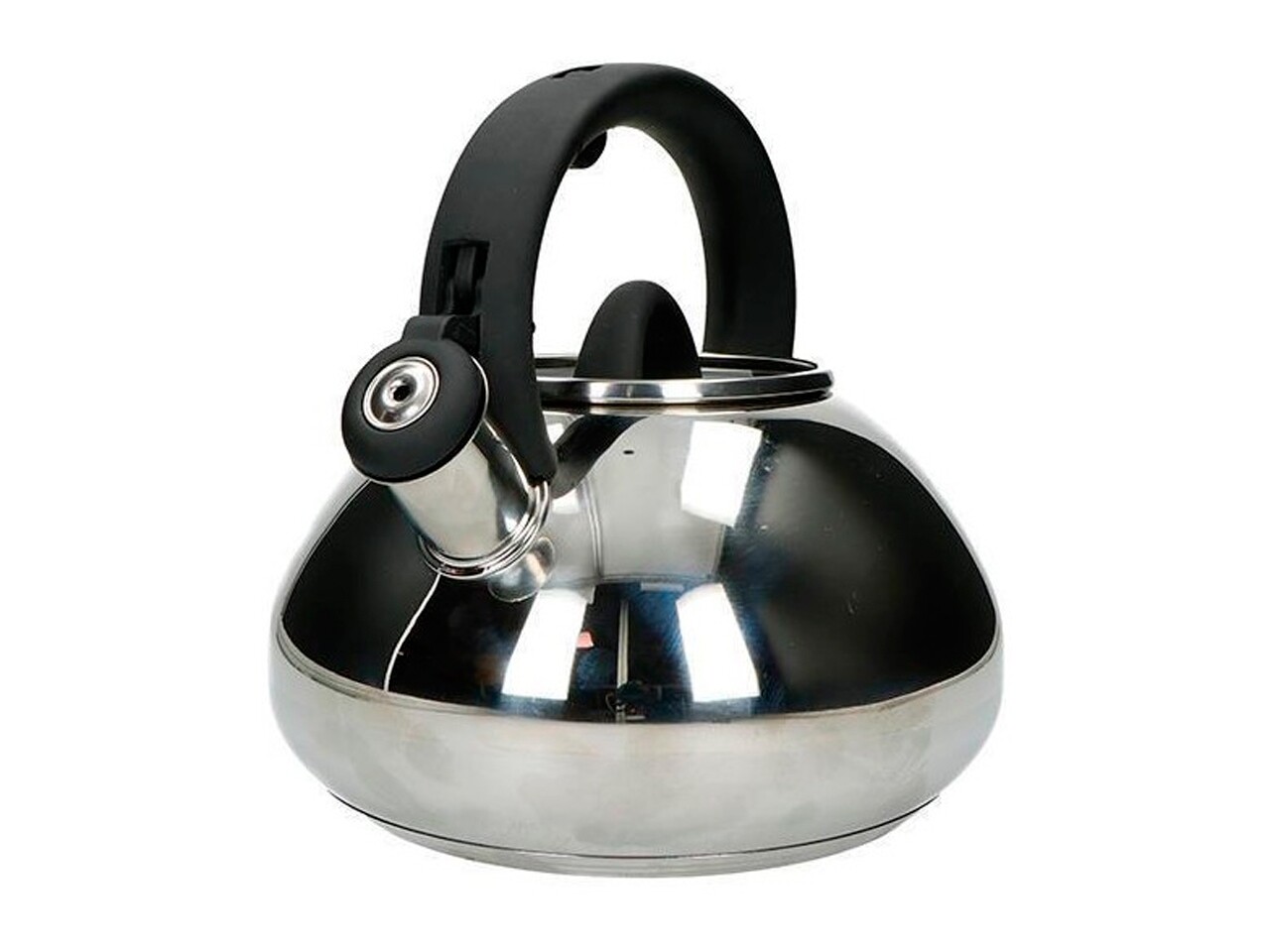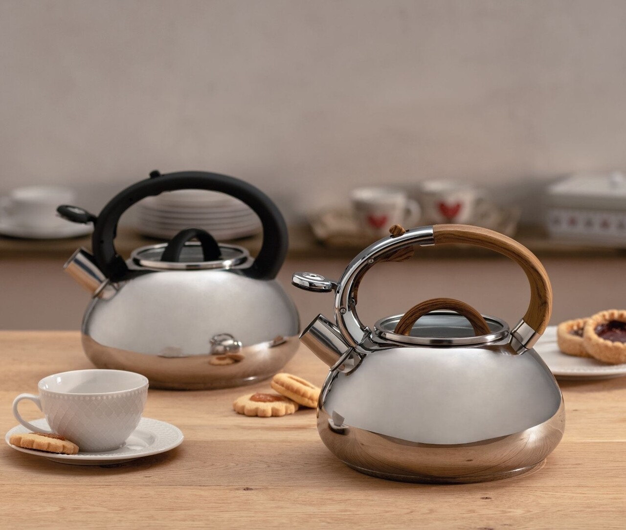 Ceainic din inox, cu maner negru, acoperit cu silicon pentru o manevrare cu usurinta.
