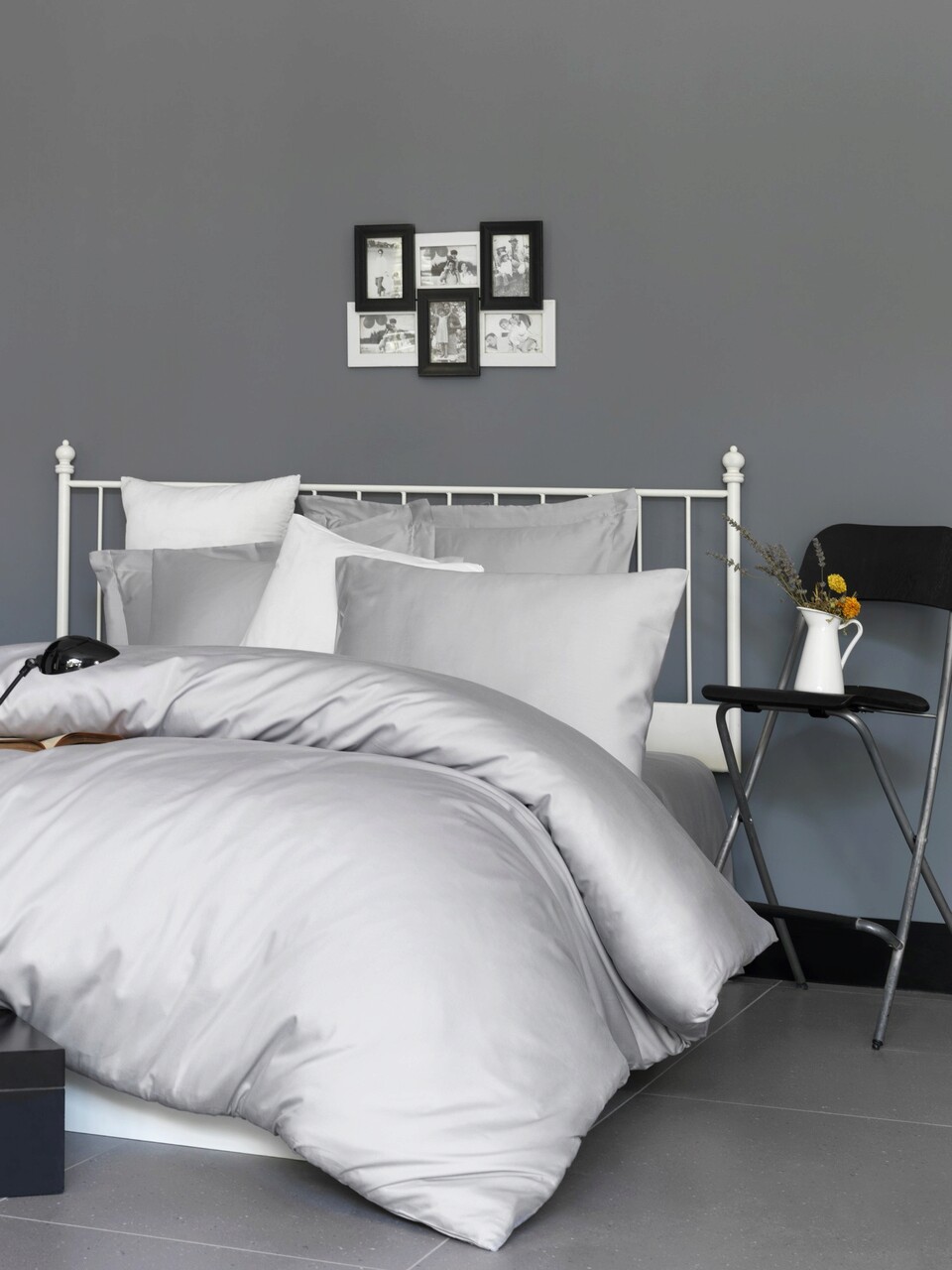 Cearceaf cu elastic pat dublu (FR) (ES), De Light Grey, Patik, Bumbac Satinat