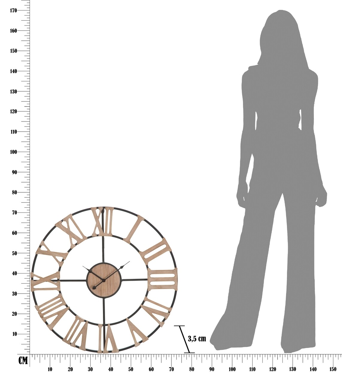 Ceas de perete Antic, Mauro Ferretti, Ø72 cm, fier/MDF