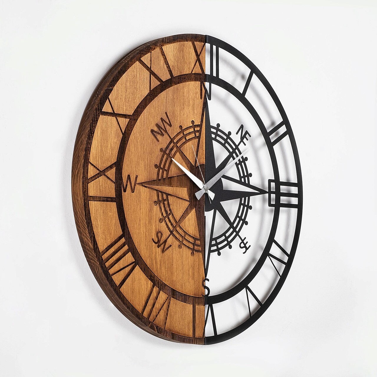 Ceas de perete, Clock Mechanism, Lemn/metal, Dimensiune: 56 x 3 x 56 cm, Nuc / Negru