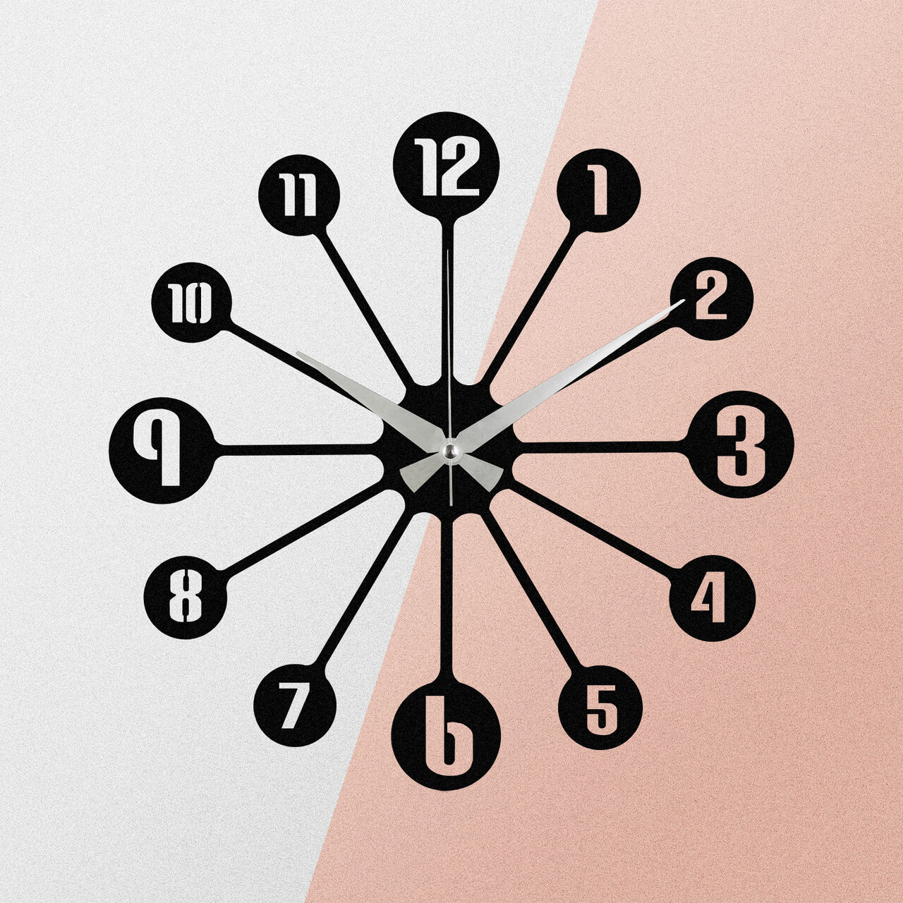 Ceas de perete, Enzoclock - S014, metal, 48 x 48 cm, negru