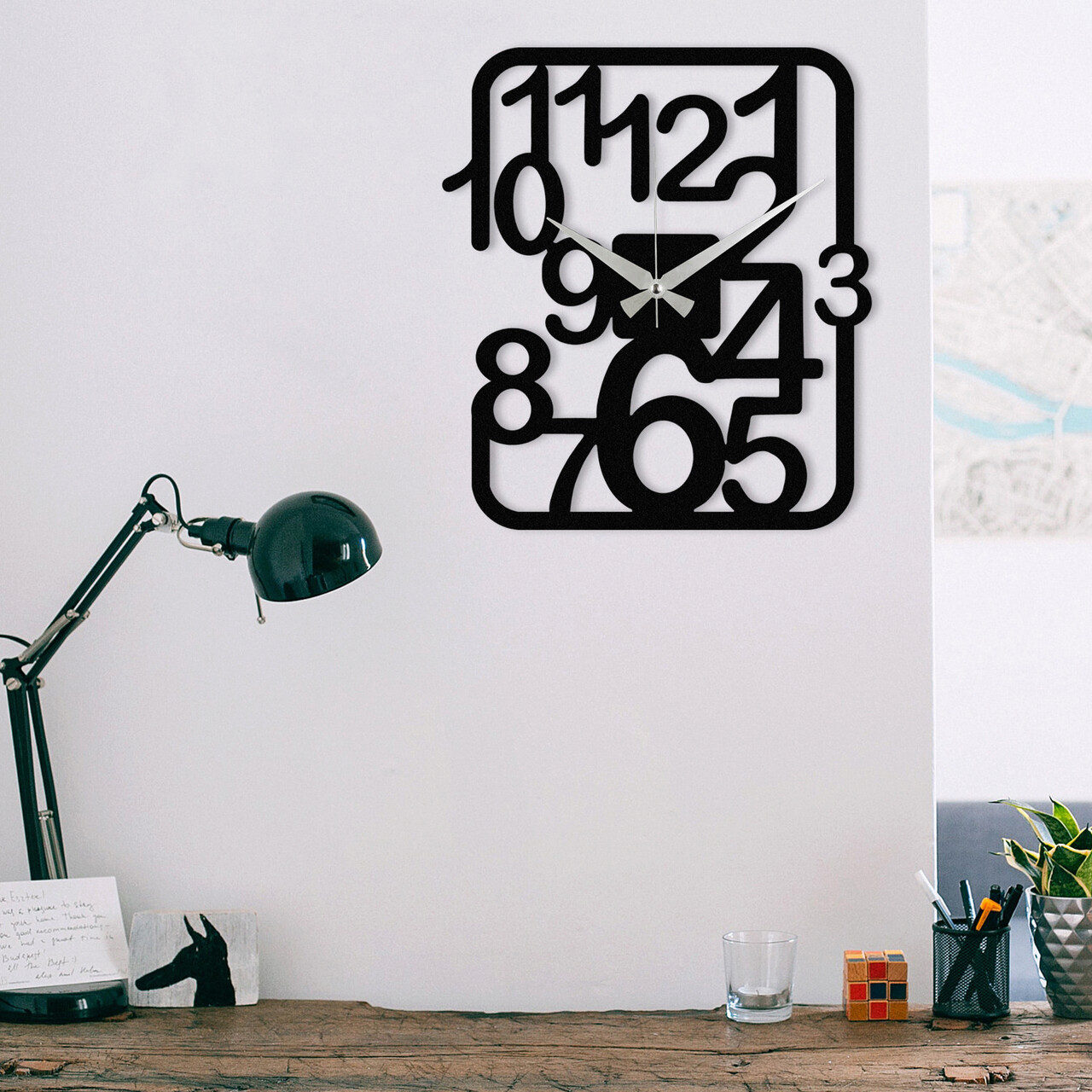 Ceas de perete, Enzoclock - S021, metal, 48 x 48 cm, negru