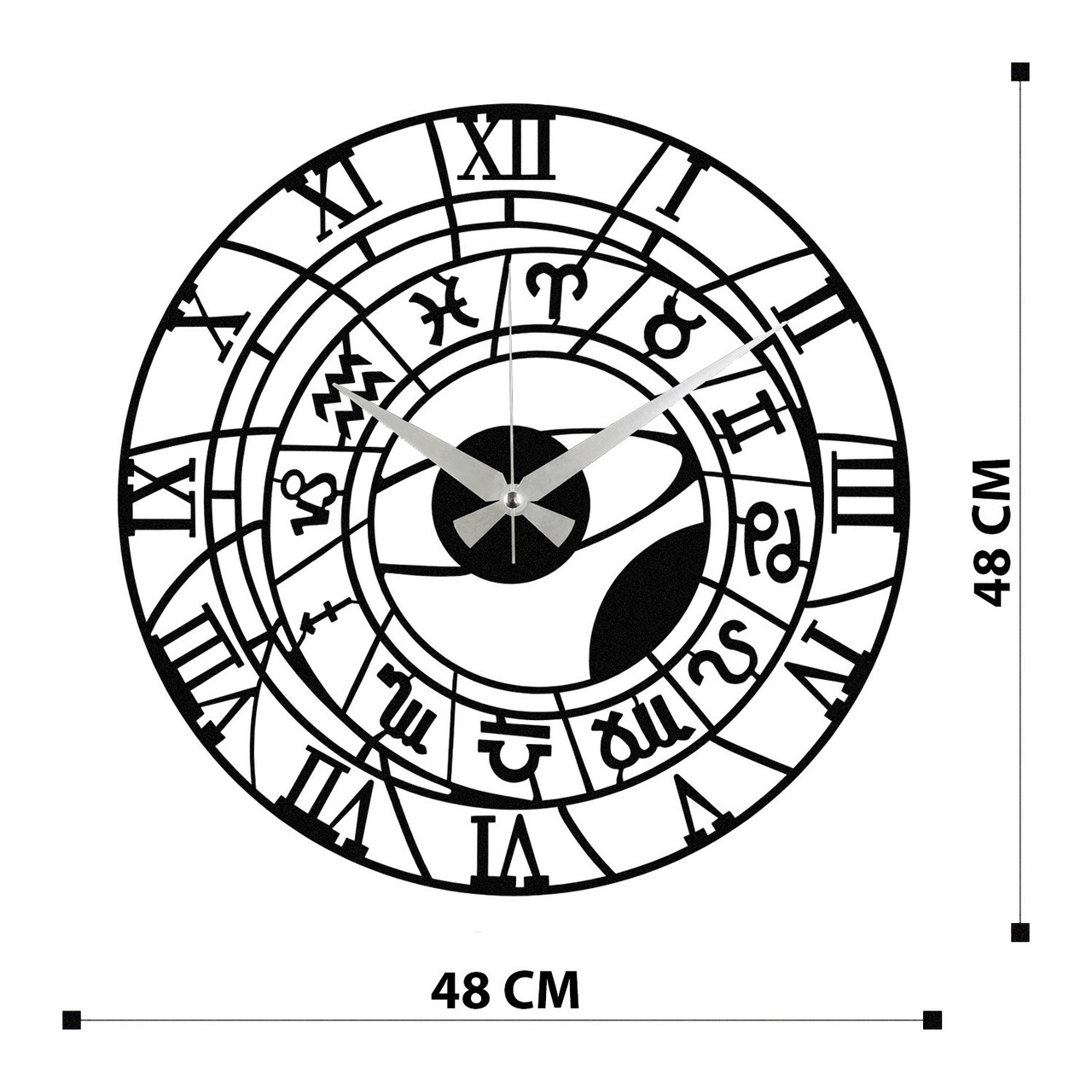 Ceas de perete, Enzoclock - S025, metal, 48 x 48 cm, negru