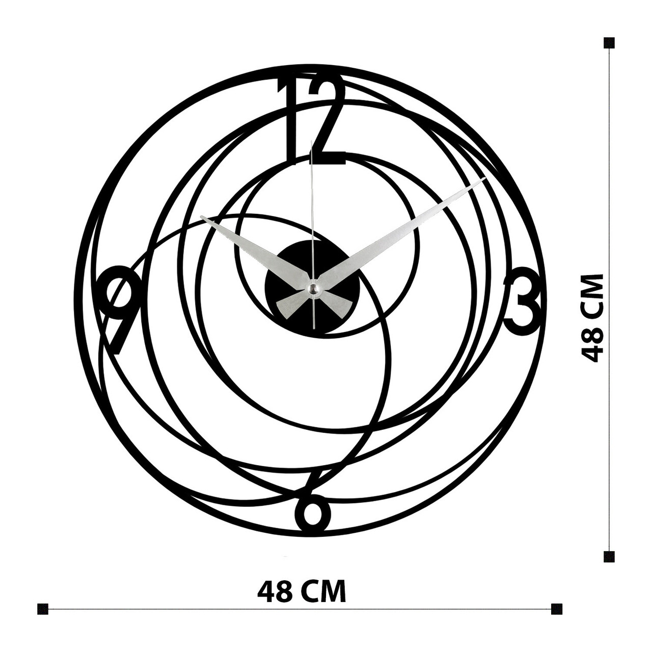 Ceas de perete, Enzoclock - S027, metal, 48 x 48 cm, negru