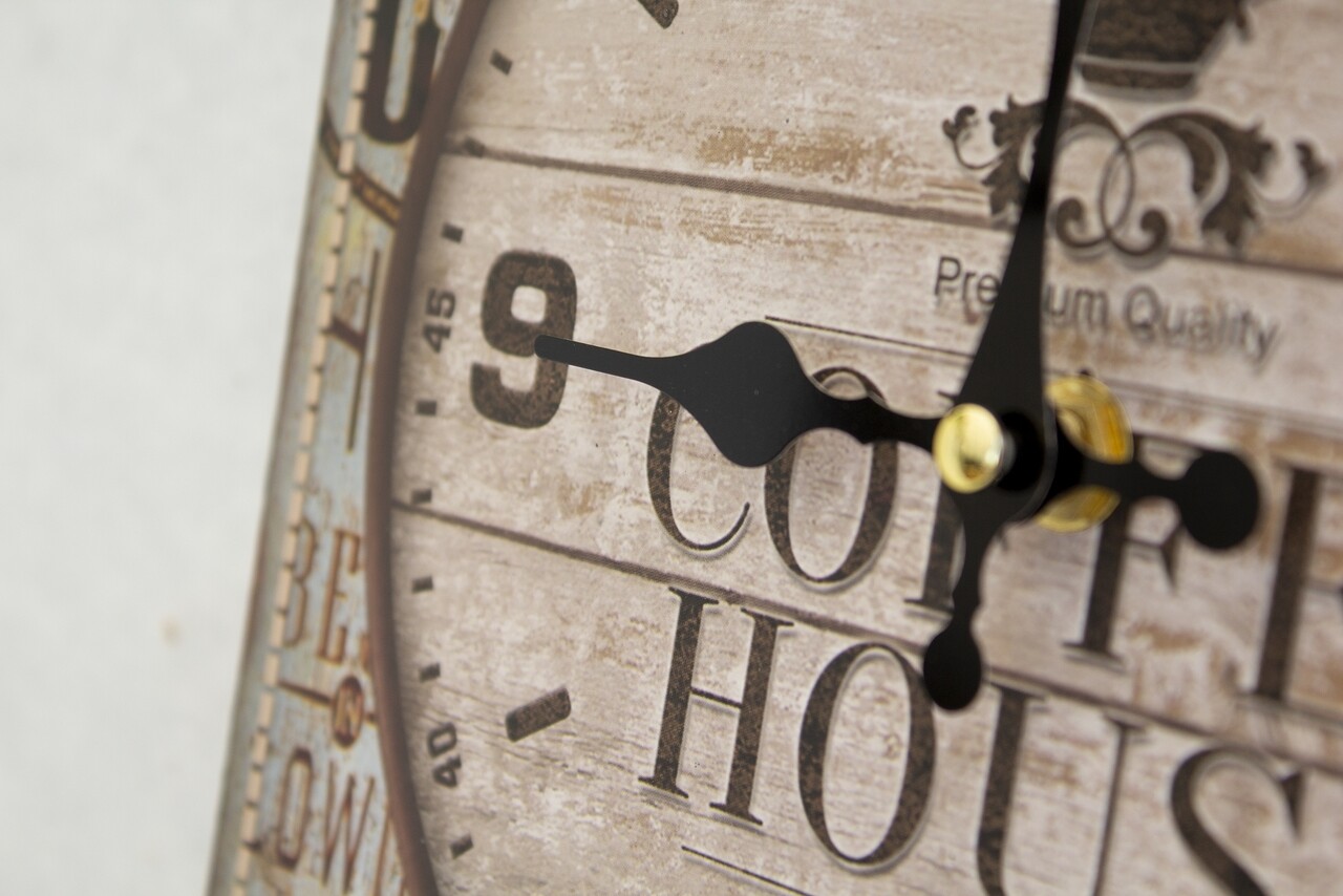 Ceasul este realizat din MDF, se intretine usor si functioneaza cu baterii.