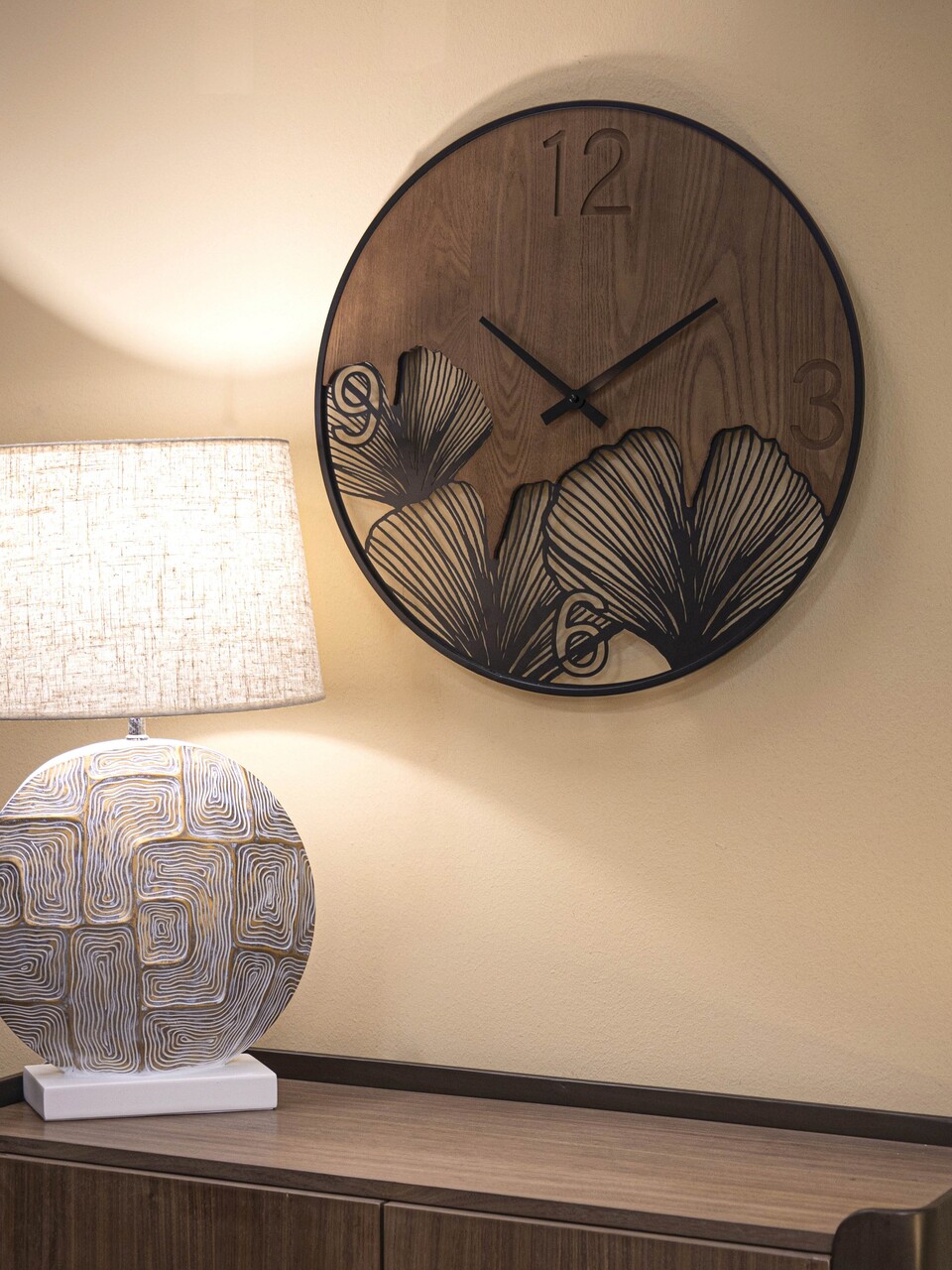 Ceas de perete Leaf Dark, Mauro Ferretti, 60 cm, fier/MDF, negru/maro