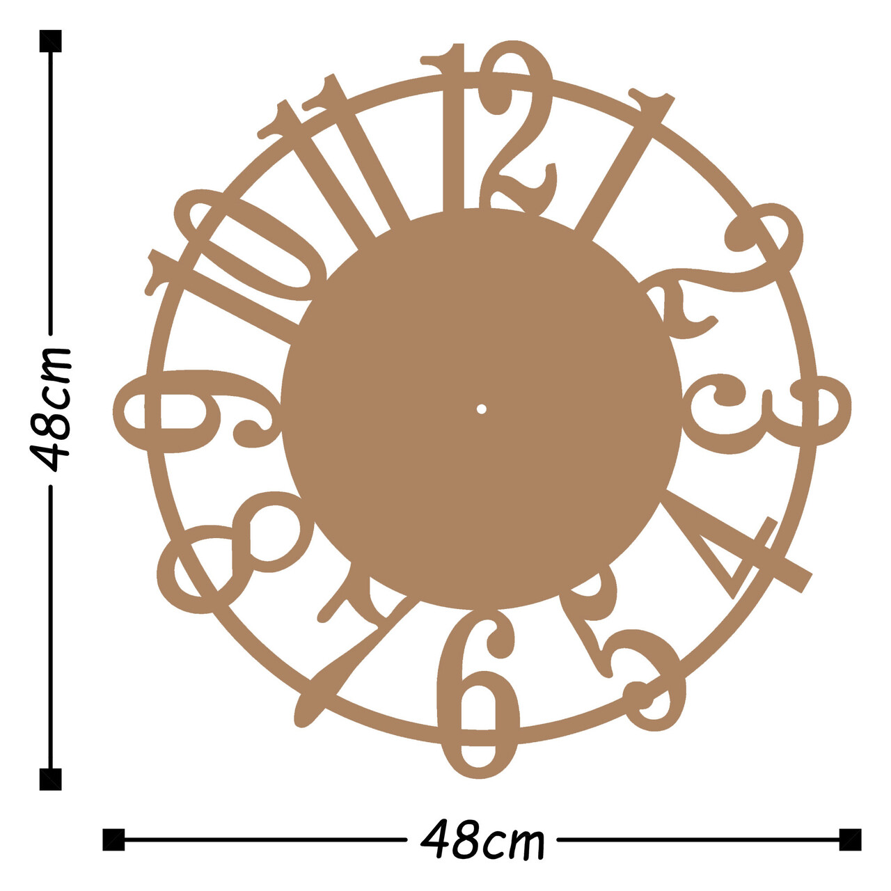 Ceas de perete, Metal Wall Clock 15, Metal, Dimensiune: 48 x 48 cm, Cupru