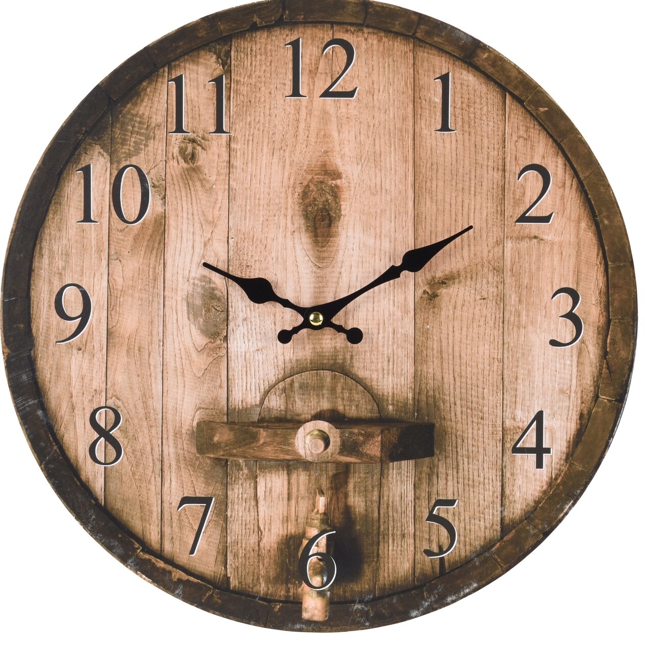 Ceasul de perete Wine are un aer rustic si functioneaza cu baterie de tip AA care nu este inclusa.