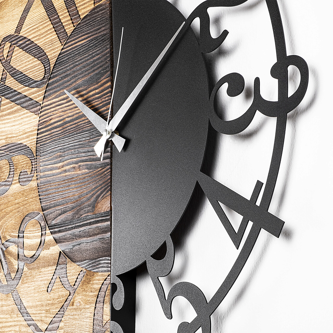 Ceas de perete, Wooden Clock 1, Lemn/metal, Dimensiune: 58 x 3 x 58 cm, Nuc / Negru
