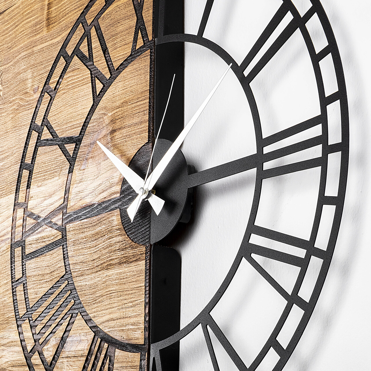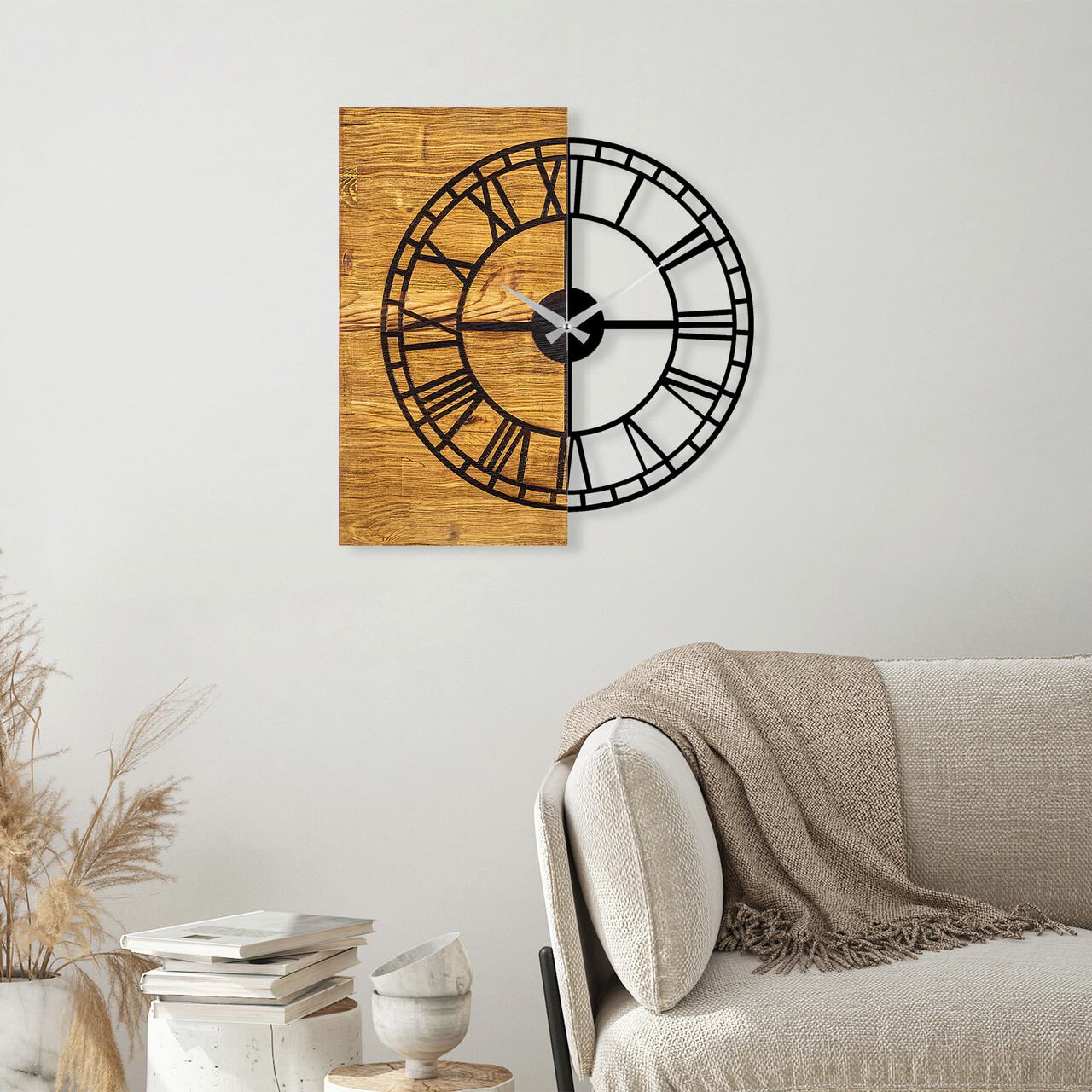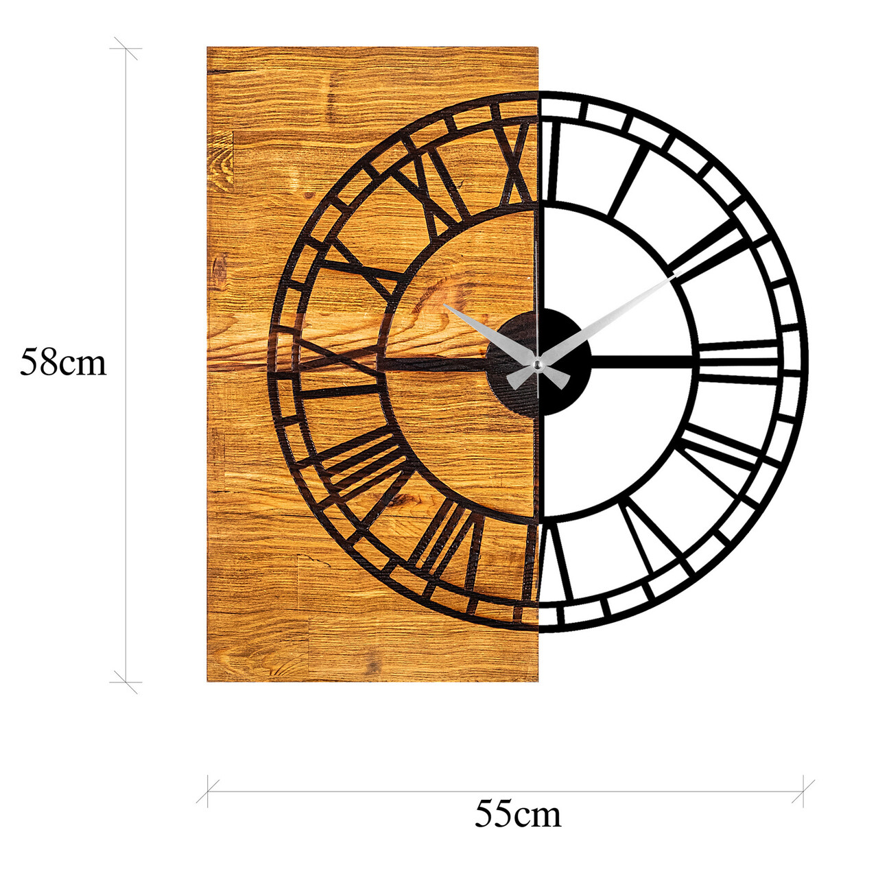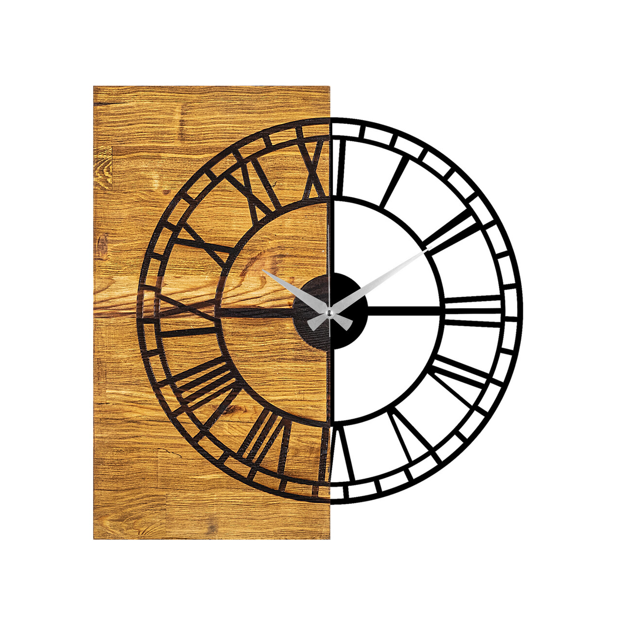 Ceas de perete, Wooden Clock 10, Lemn/metal, Dimensiune: 55 x 3 x 58 cm, Nuc / Negru