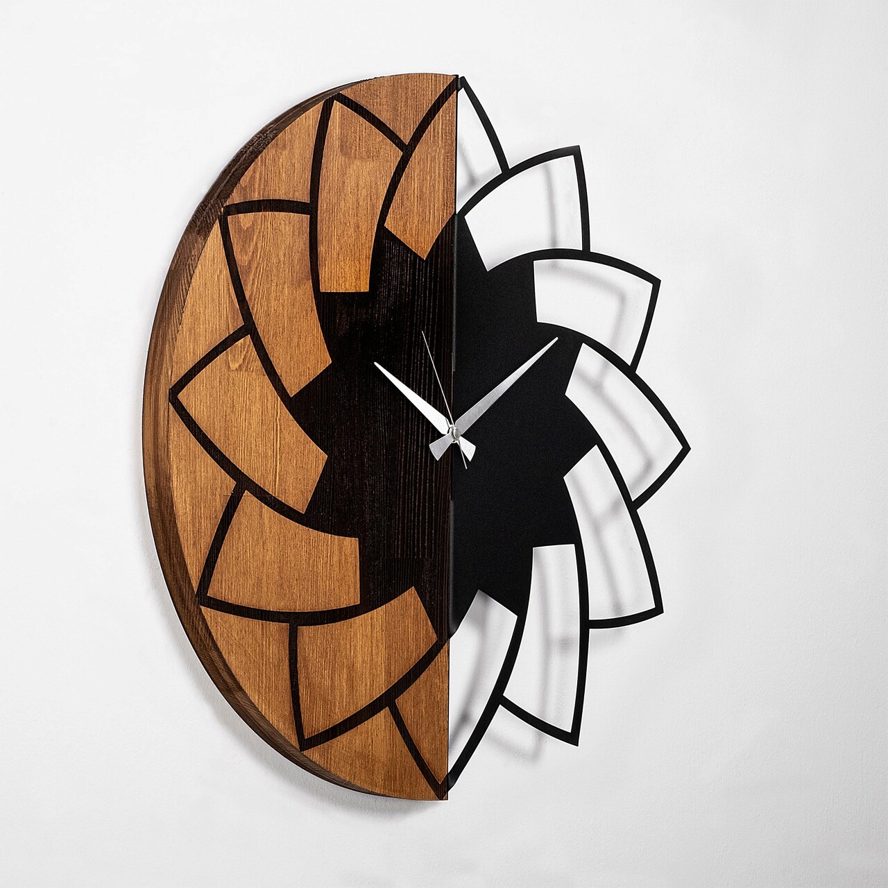 Ceas de perete, Wooden Clock, Lemn/metal, ø56 cm, Nuc / Negru