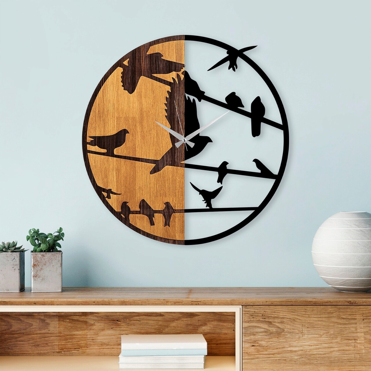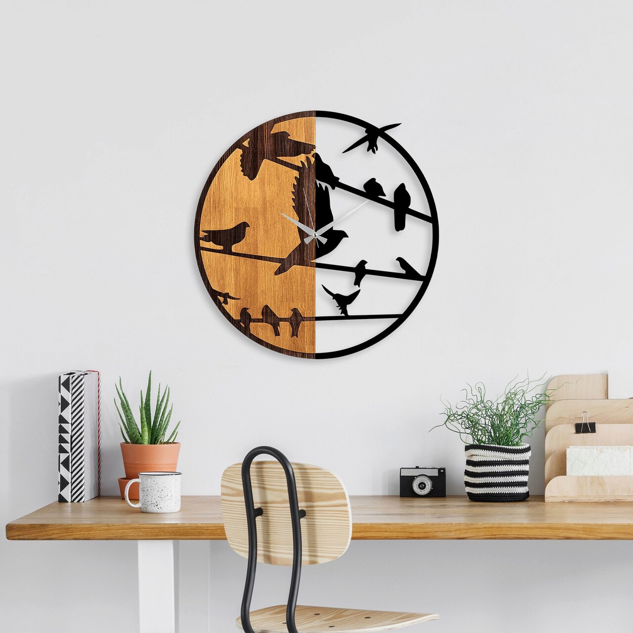 Ceas de perete, Wooden Clock, Lemn/metal, ø56 cm, Nuc / Negru