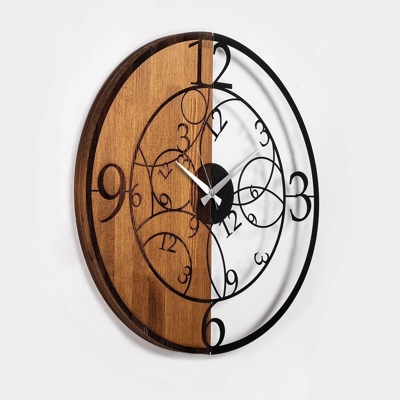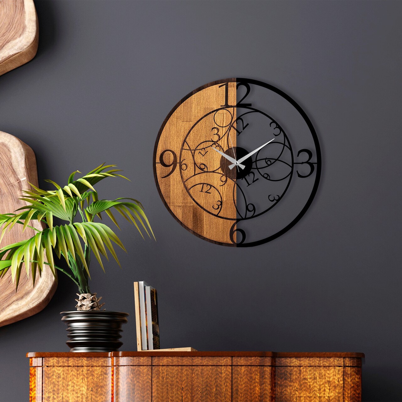 Ceas de perete, Wooden Clock, Lemn/metal, ø56 cm, Nuc / Negru