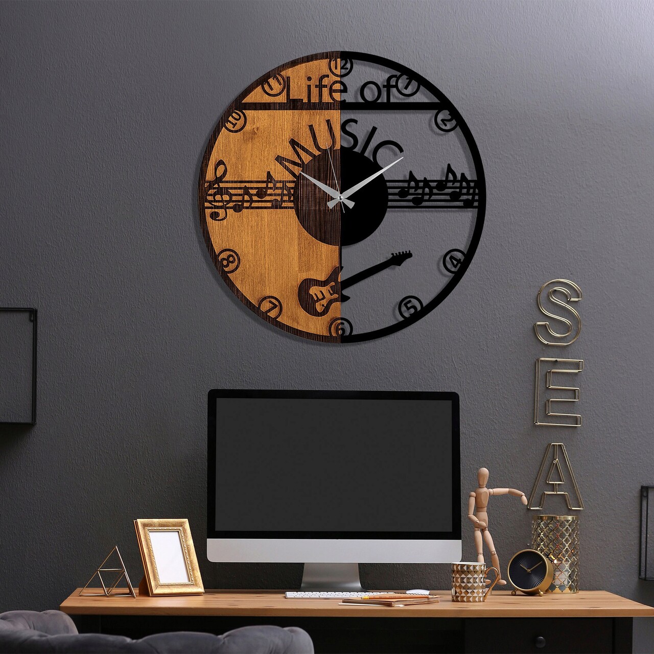 Ceas de perete, Wooden Clock, Lemn/metal, ø56 cm, Nuc / Negru