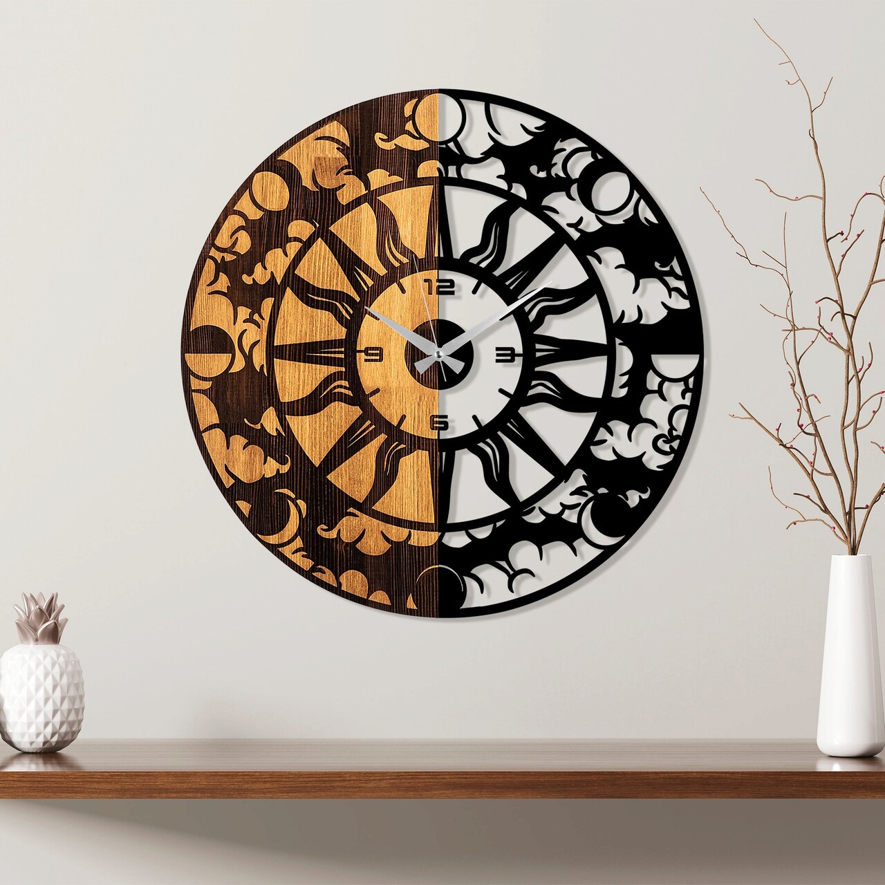 Ceas de perete, Wooden Clock, Lemn/metal, ø56 cm, Nuc / Negru