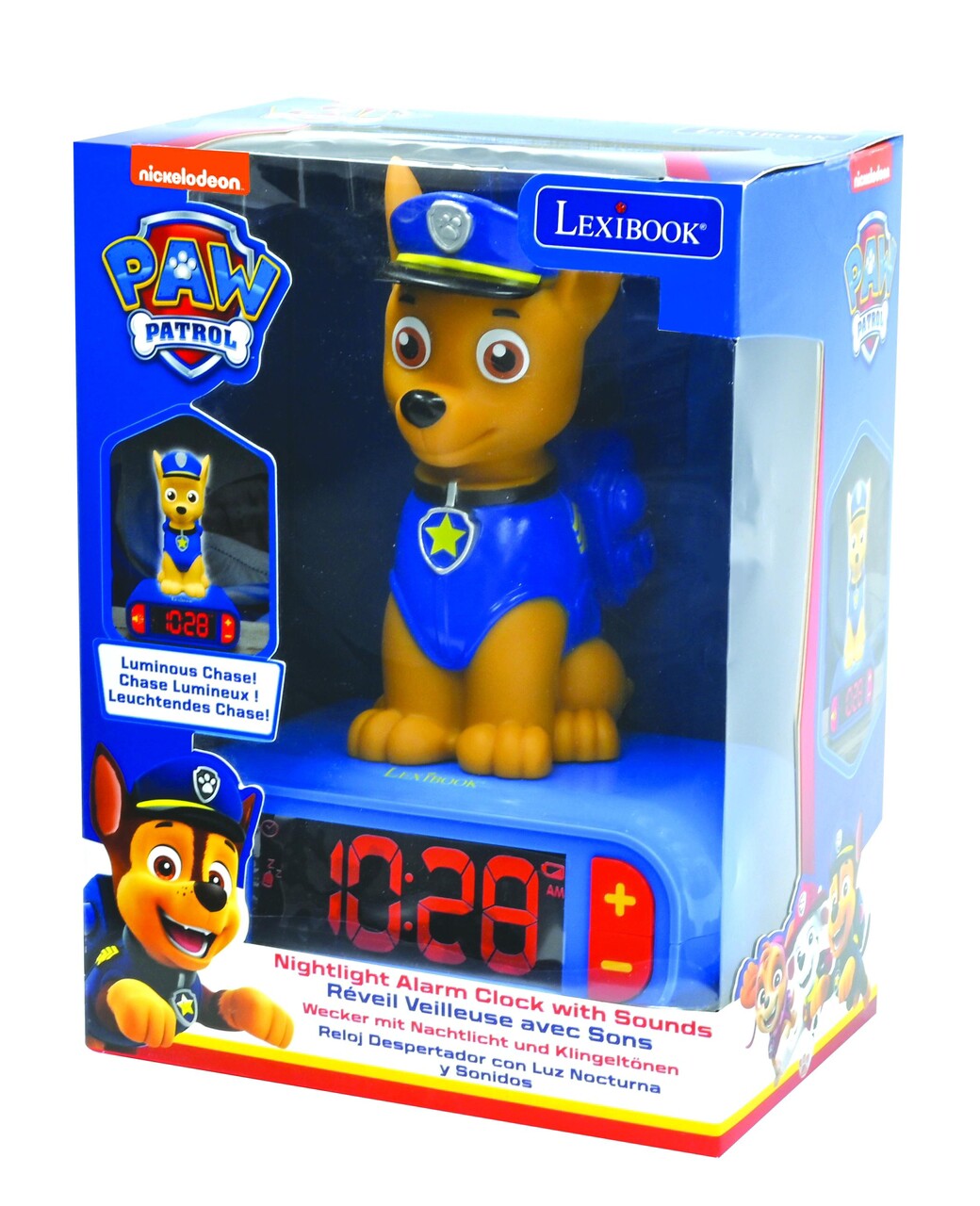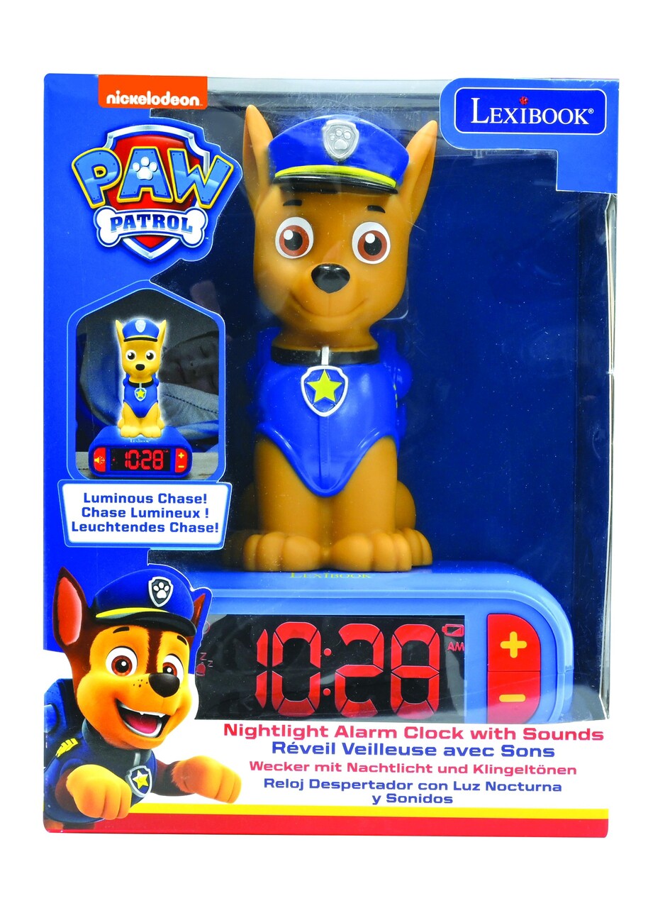 Ceas desteptator cu lumina 3D pentru copii Paw Patrol, LEXIBOOK, 20x15x10 cm, plastic/cauciuc, albastru/galben
