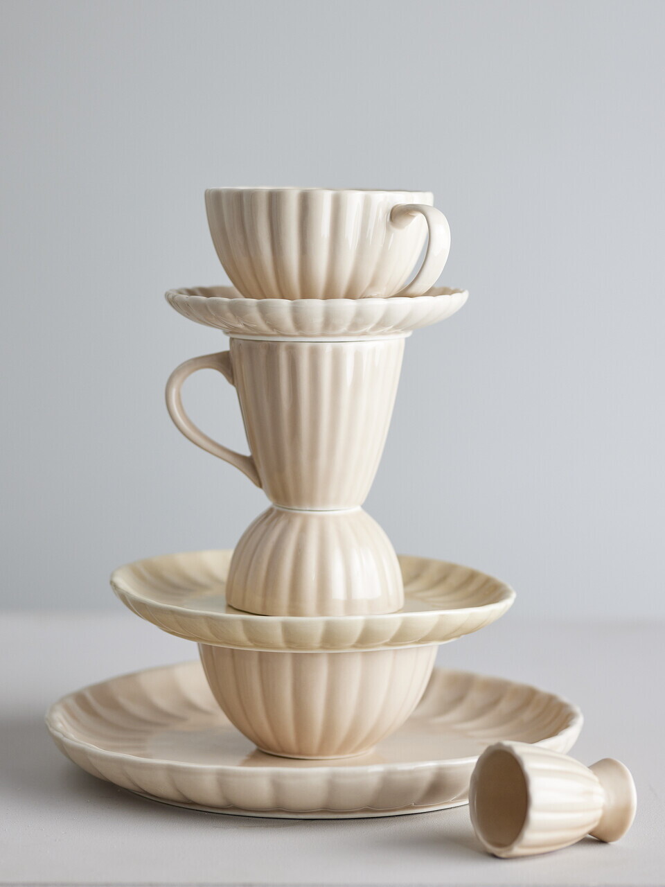 Ceasca cu farfurie, Bloomingville, Latina, 220 ml, ceramica, natural