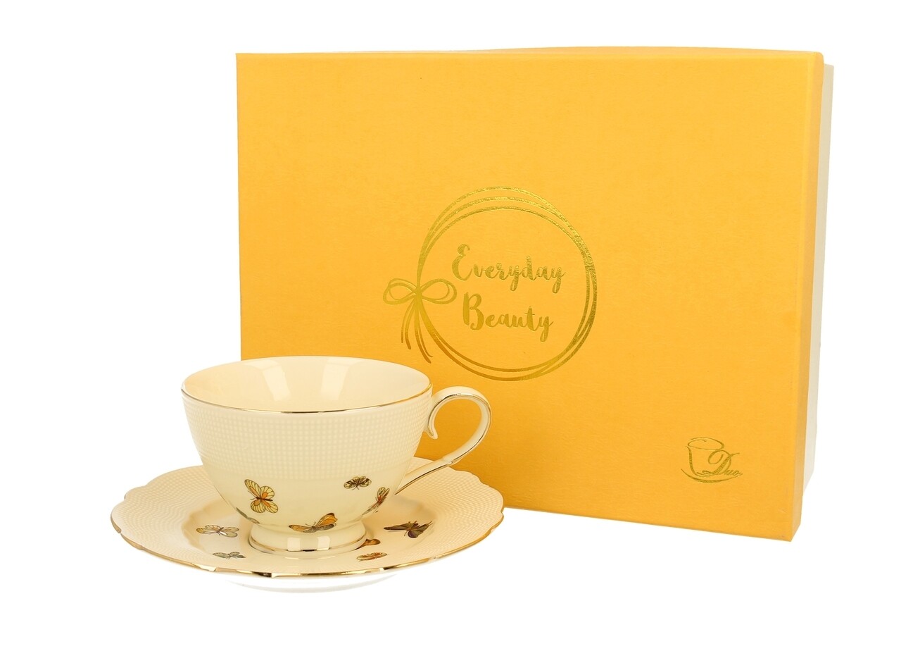 Ceasca cu farfurie Butterfly, Duo, 260 ml, portelan, multicolor