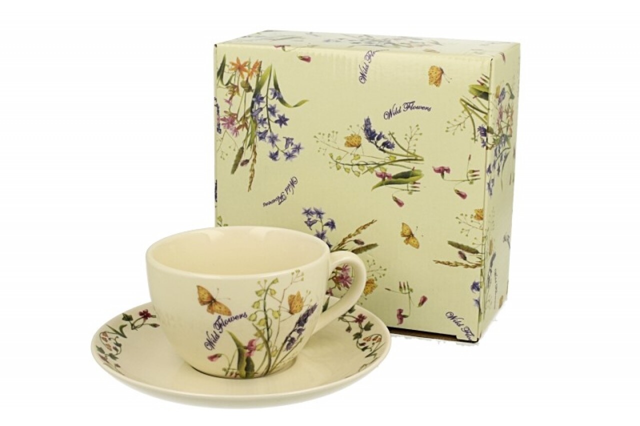 Ceasca cu farfurie Field Flower, Duo, 280 ml, portelan, multicolor