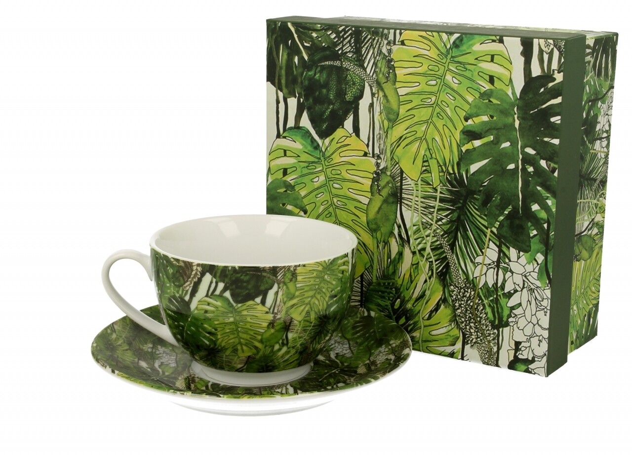 Ceasca cu farfurie Foglie, Duo, 250 ml, portelan, verde