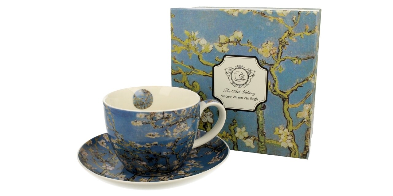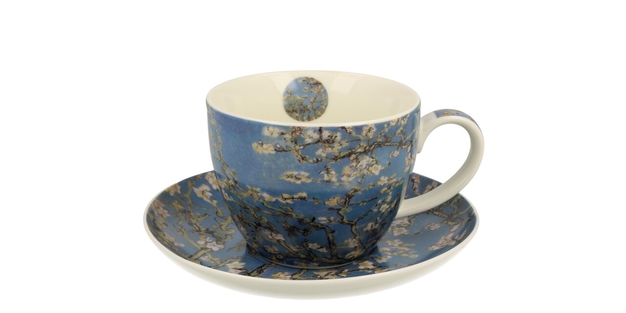 Ceasca cu farfurie Jumbo Almond Blossom, Duo, 450 ml, portelan, albastru