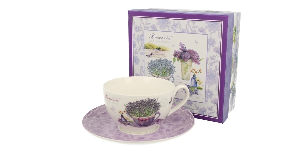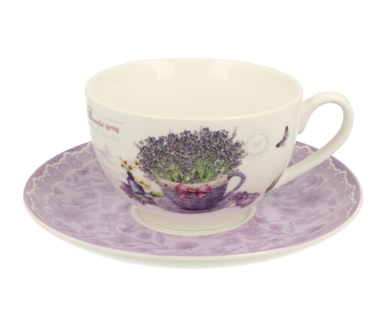 Ceasca cu farfurie Passion, Duo, 250 ml, portelan, mov