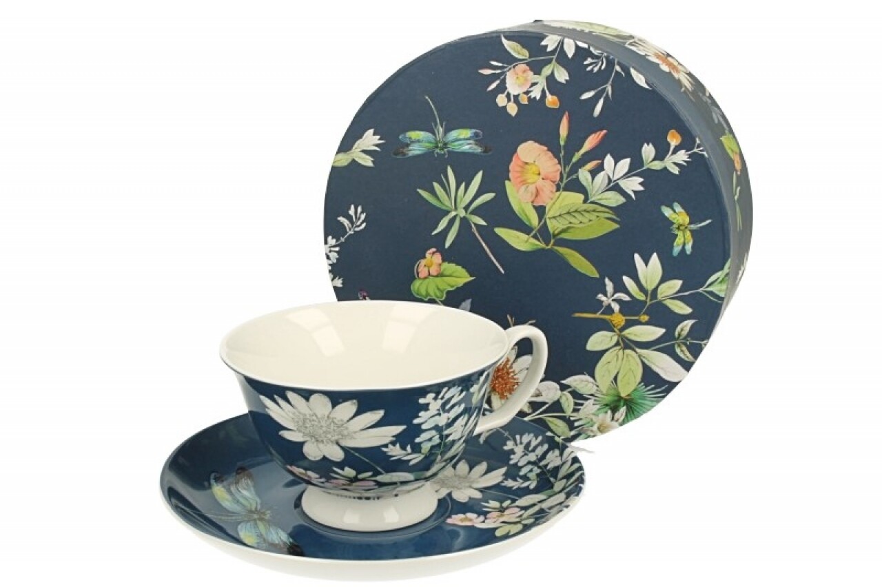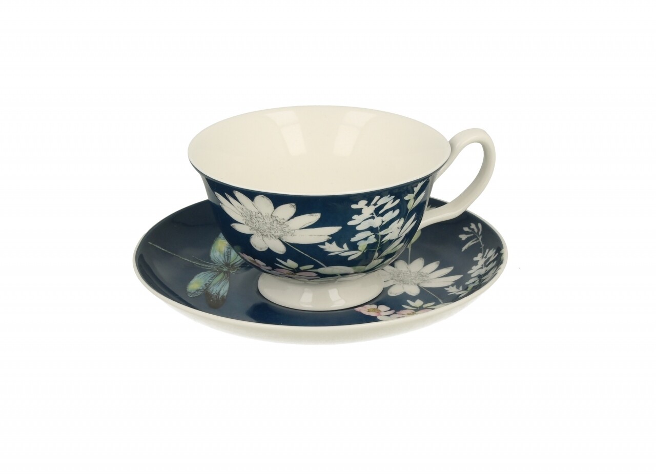 Ceasca cu farfurie Rabia, Duo, 200 ml, portelan, albastru