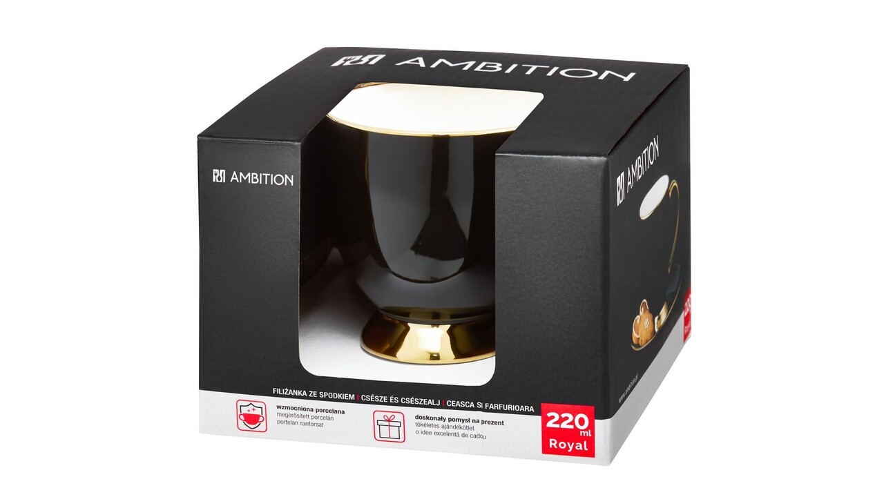 Ceasca cu farfurie Royal, Ambition, 220 ml, portelan, negru