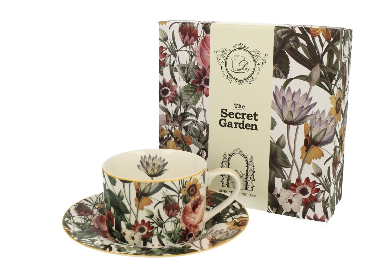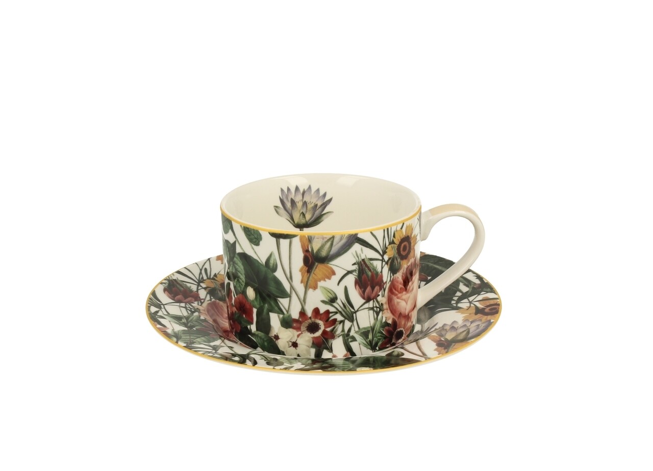 Ceasca cu farfurie Spring Flowers, Duo, 240 ml, portelan, multicolor